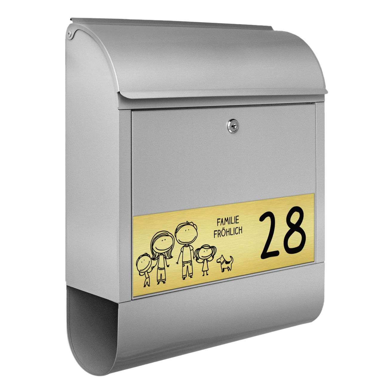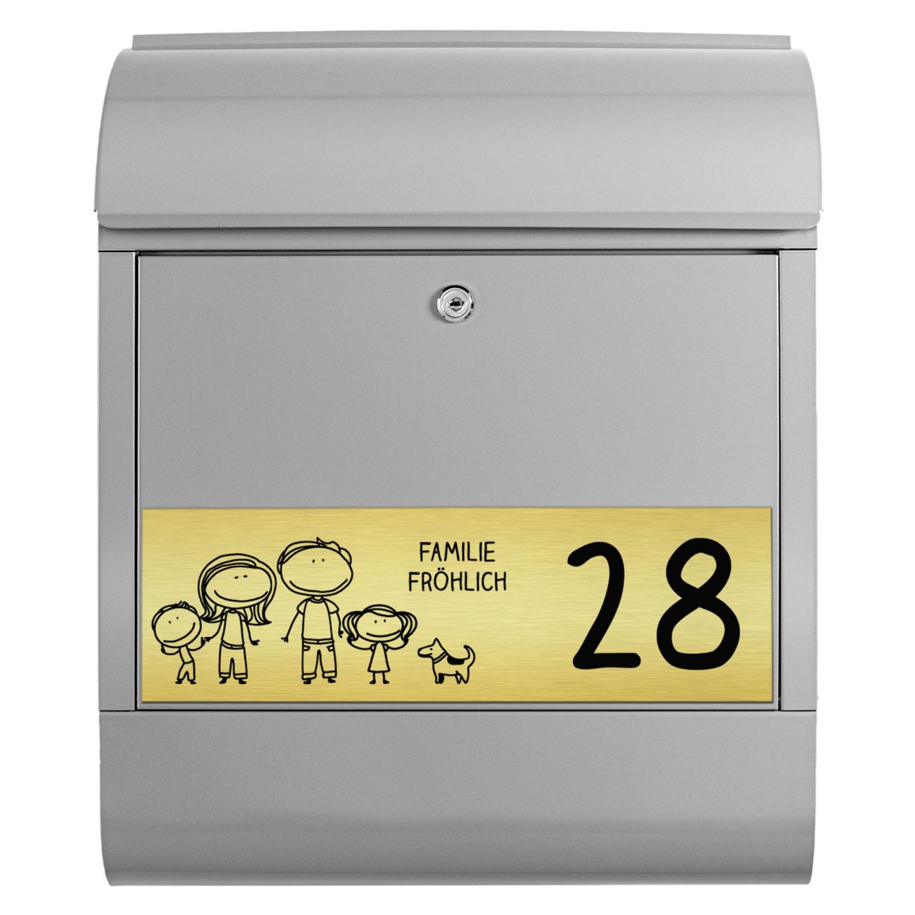 Großer Stahl Briefkasten Vater, Mutter, Junge, Mädchen, Hund