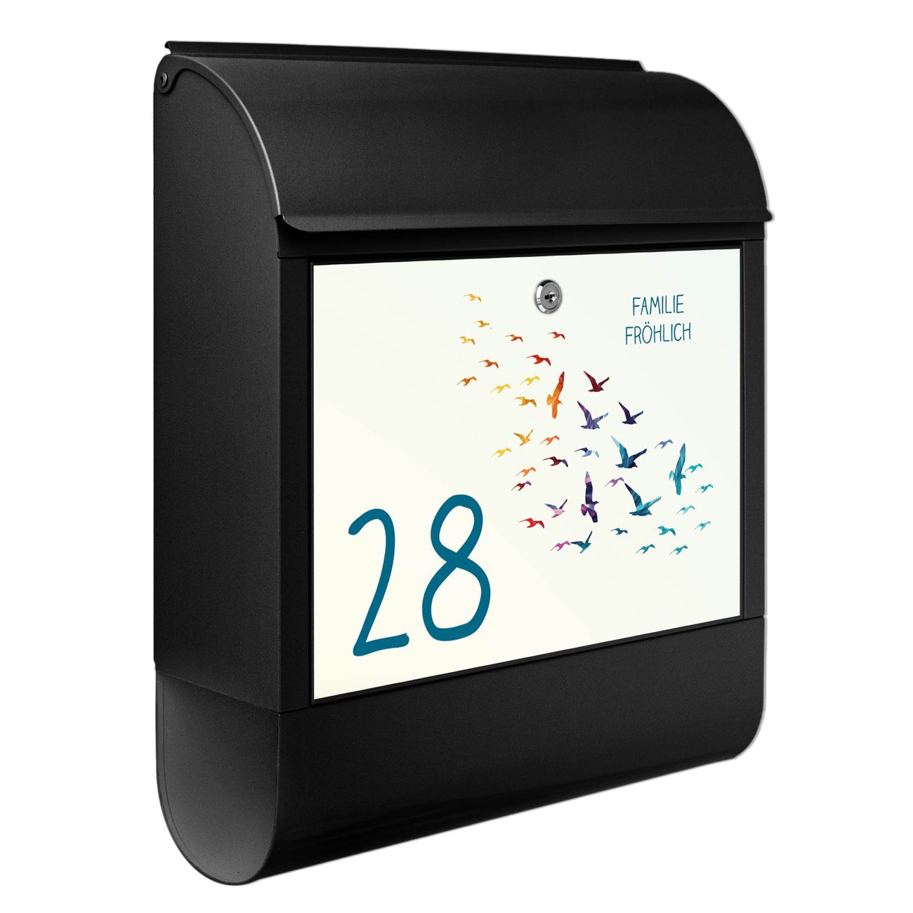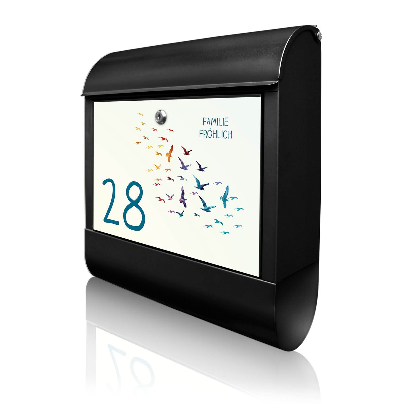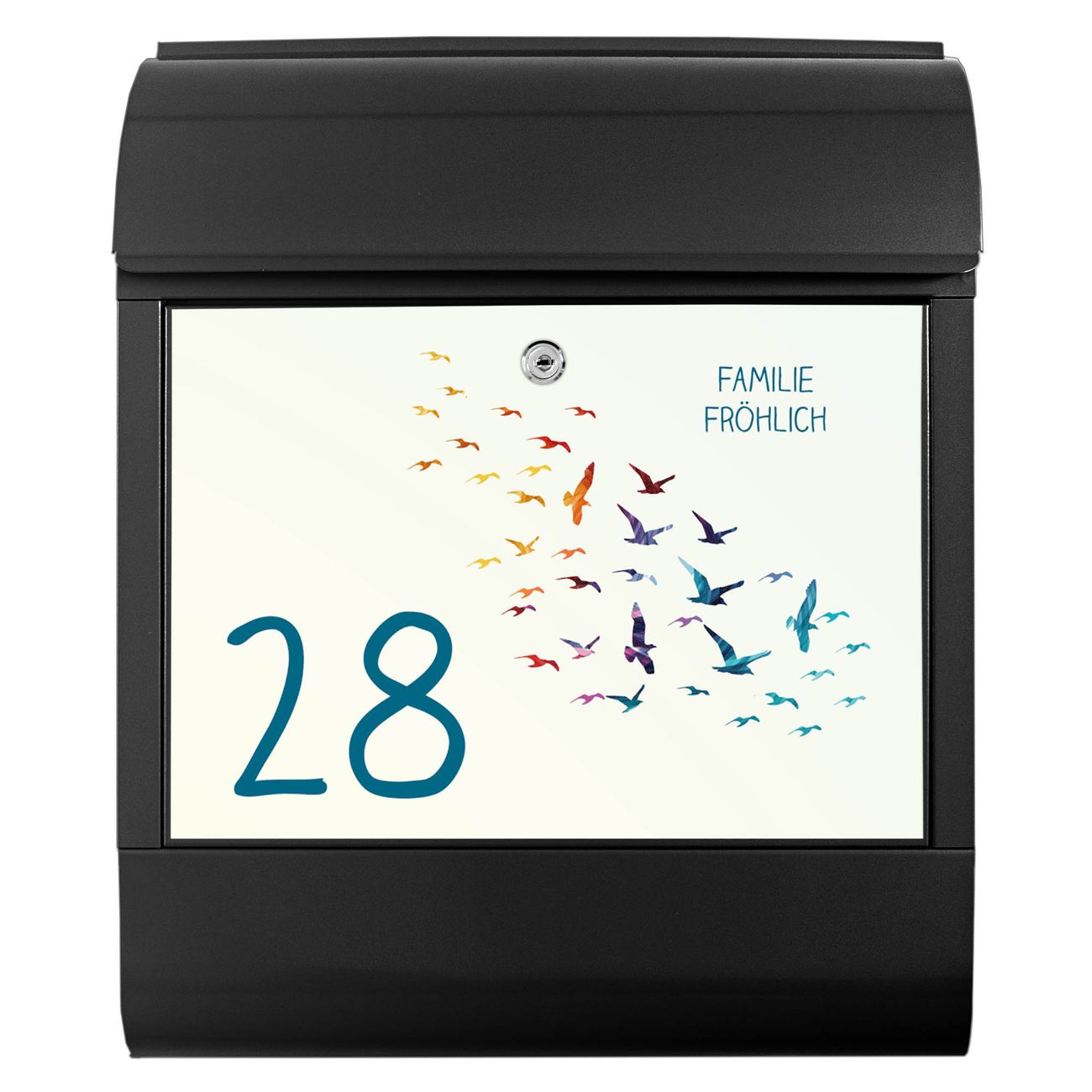 Großer Stahl Briefkasten Motiv Vogelschwarm Bunt
