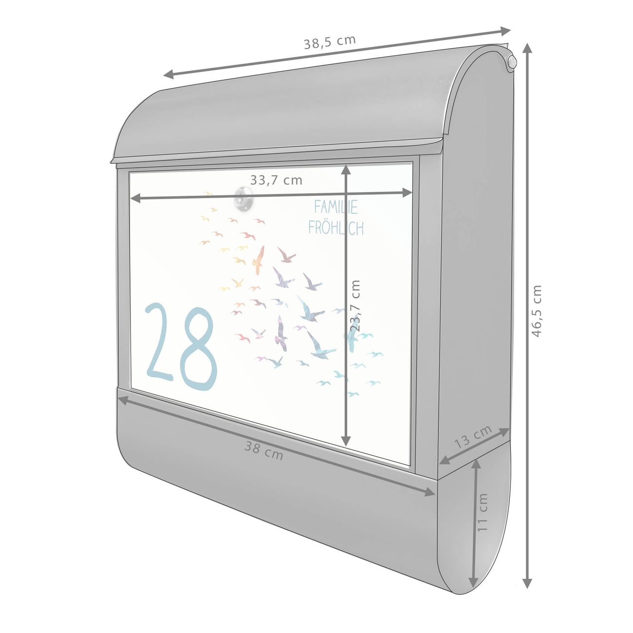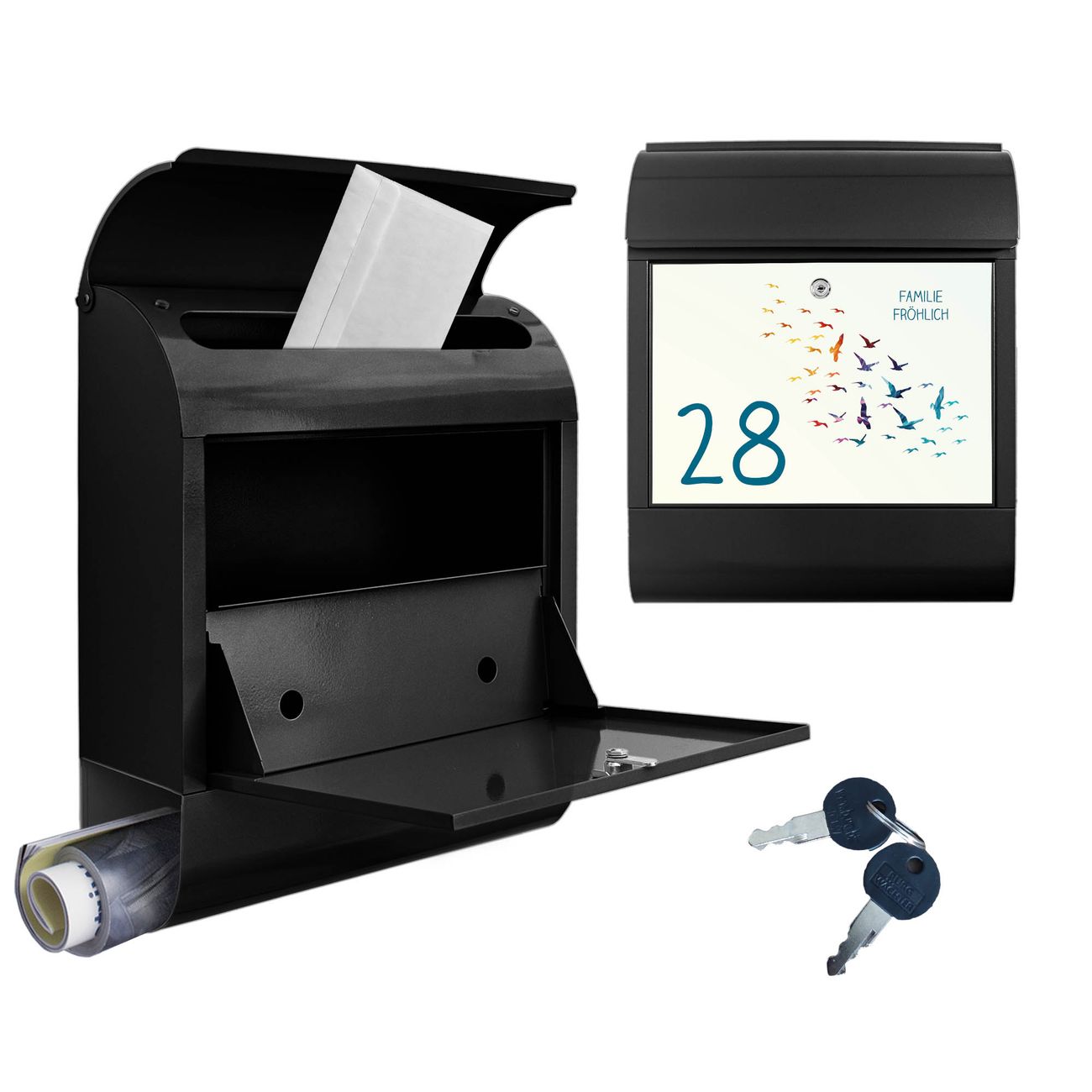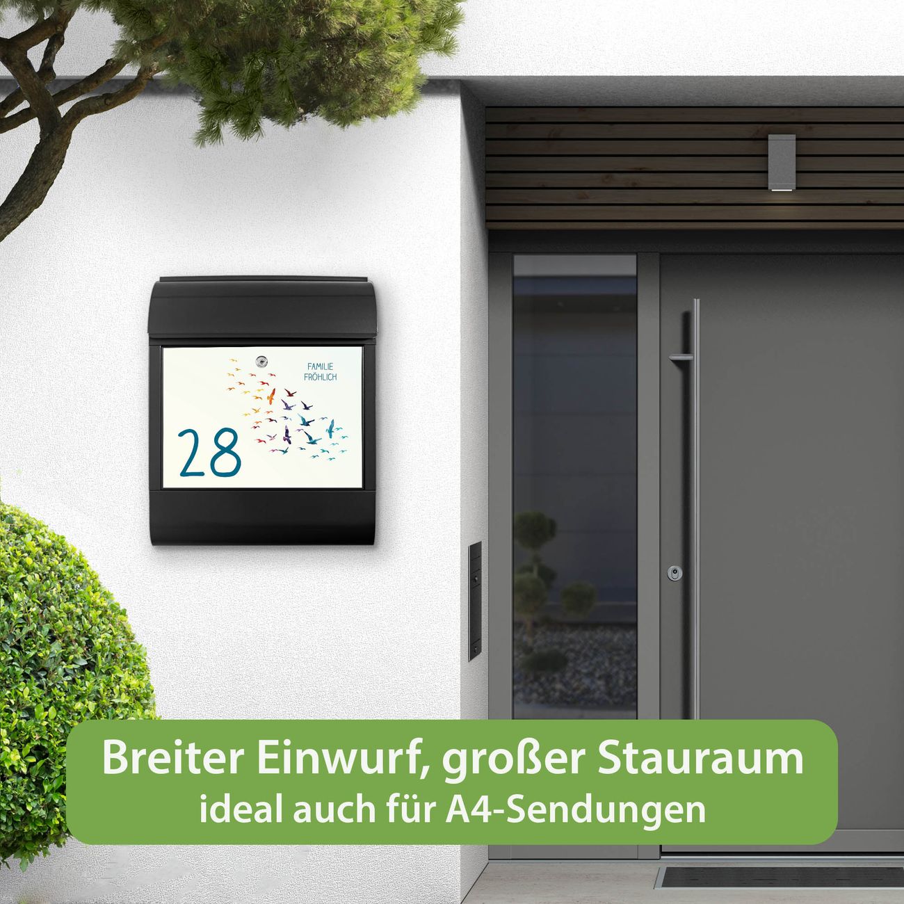 Großer Stahl Briefkasten Motiv Vogelschwarm Bunt