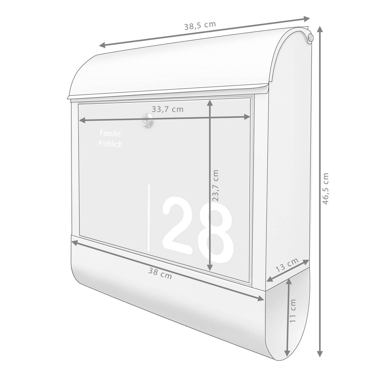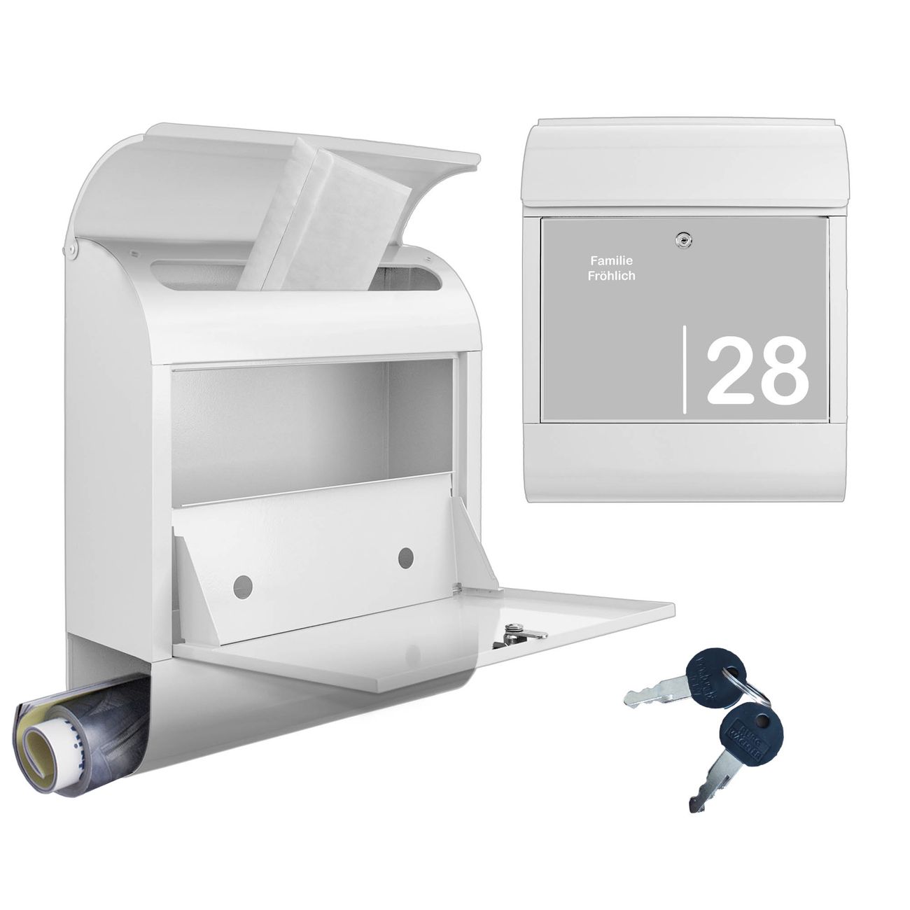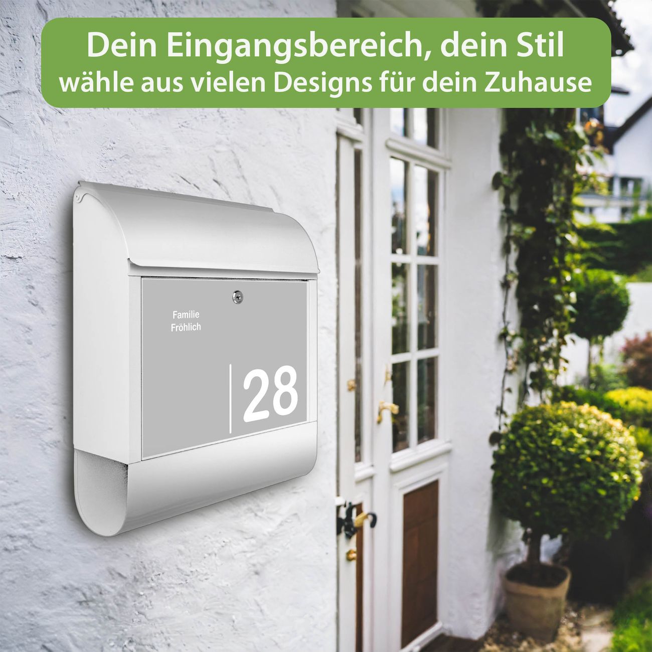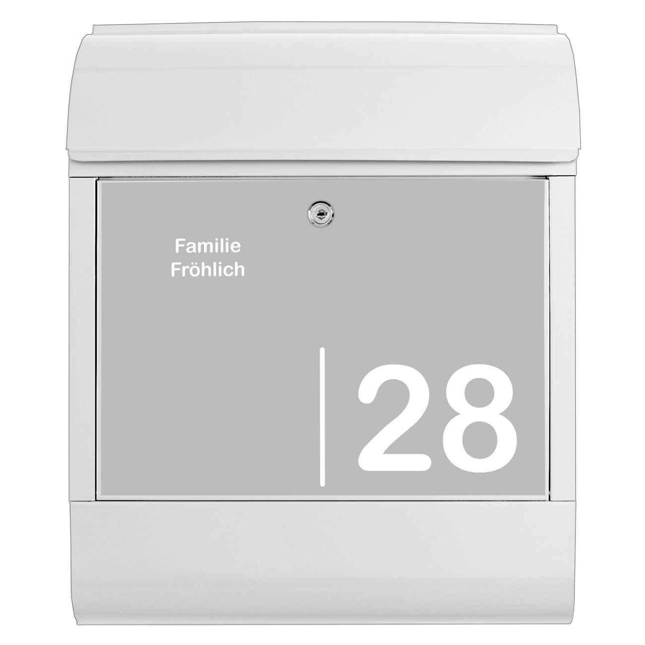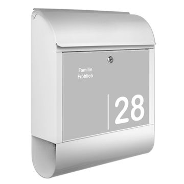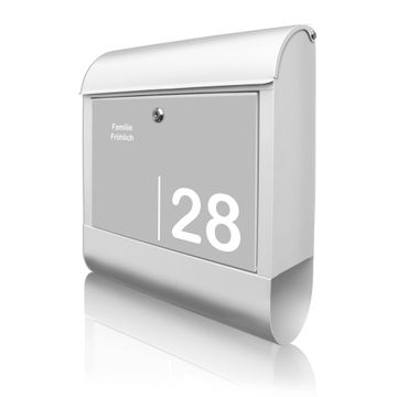 Großer Stahl Briefkasten Motiv Weiß auf Grau 2