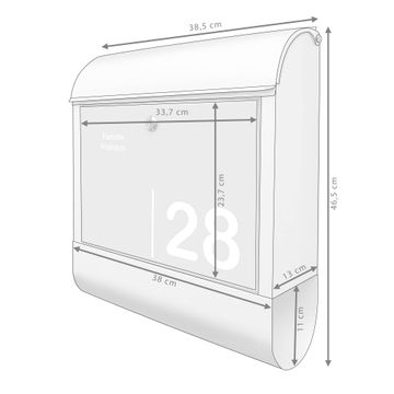DESIGN: Der Postkasten mit Motiv Motiv Weiß auf Grau 2 hat ein sehr ansprechendes und ausgefallenes Design, damit entlocken Sie Ihren Nachbarn und dem Postboten ein Lächeln. Heben Sie Sich von der tristen grauen Masse ab, ohne auf Funktionalität zu verzichten. DETAILS: Der Postkasten besteht aus pulverbeschichtetem Stahl. Er ist 38x46x12,5cm groß. Das Motiv besteht aus einer wetter- und UV-resistenten Folie, die mit einem Schutzlaminat überzogen ist, sodass der Briefkasten zusätzlich vor Kratzern geschützt ist. Der Briefkasten wird mit Montagematerial, zusätzlich zwei Schlüssel sowie einer Bohrschablone geliefert. NUTZEN: Sie können diesen Briefkasten sowohl als Wandbriefkasten montieren oder einen passenden Ständer kaufen und als Standbriefkasten einbetonieren. Die Größe bietet genügend Platz für Sendungen aller Art, der Einwurf fasst auch größere A4 Sendungen. BANJADO: Ihr Briefkasten wird in Sachsen in einer kleinen Manufaktur von Hand veredelt. Die Motivfolie ist lösungsmittelfrei und schutzlaminiert für einen langen Halt. Wir legen großen Wert auf die Verbindung von Funktionalität und Design. Sie erhalten Handarbeit aus Sachsen.