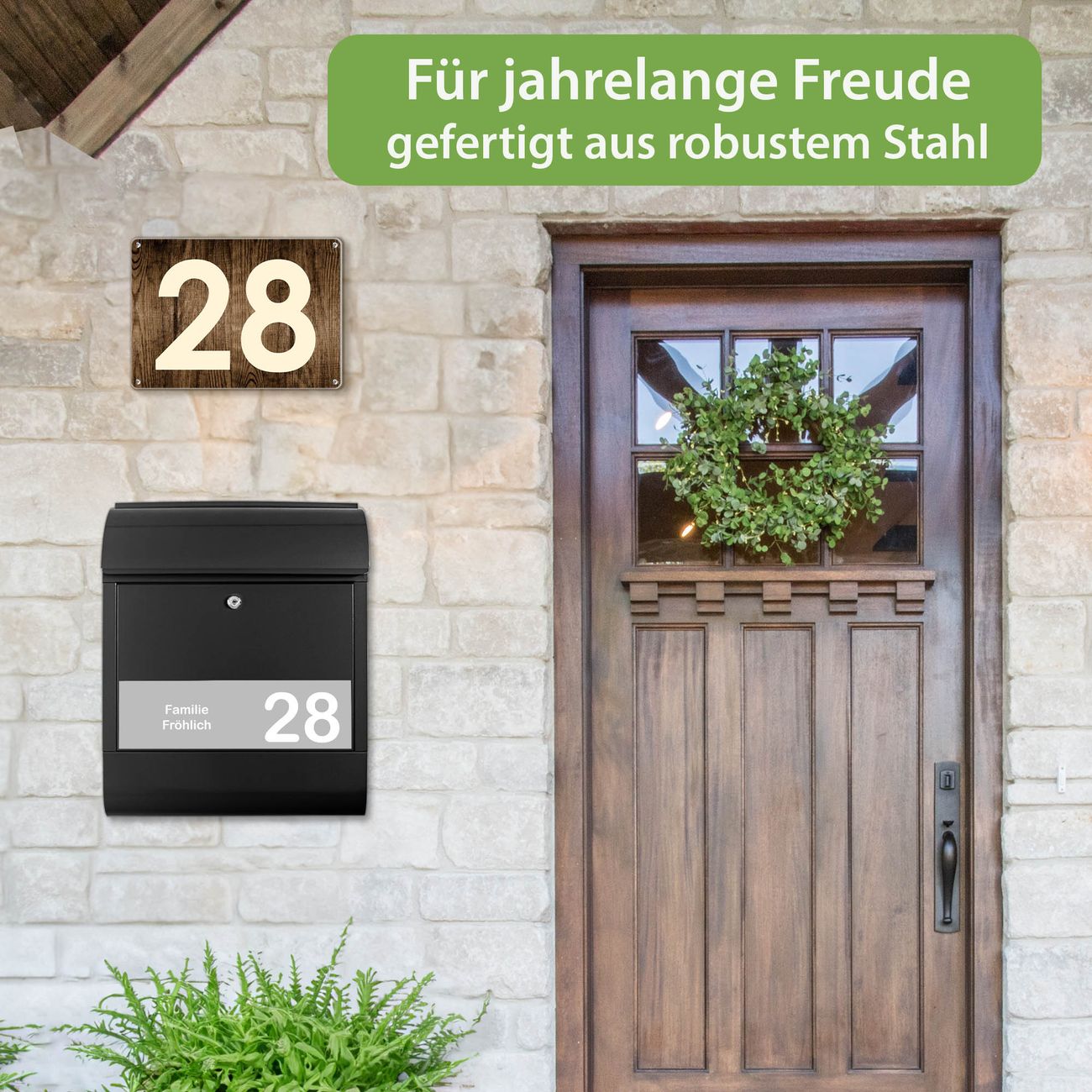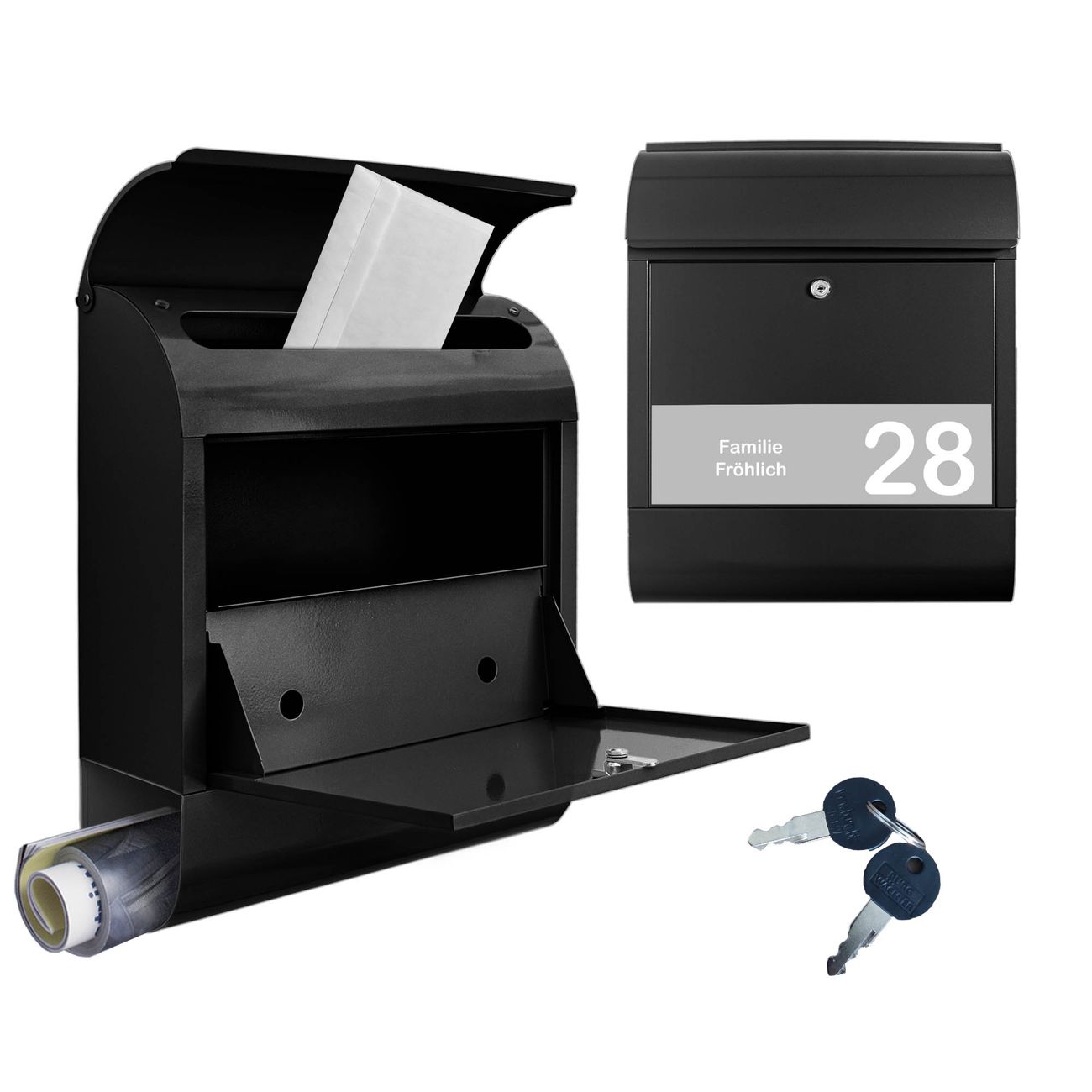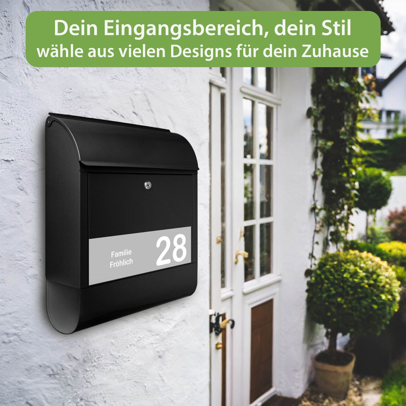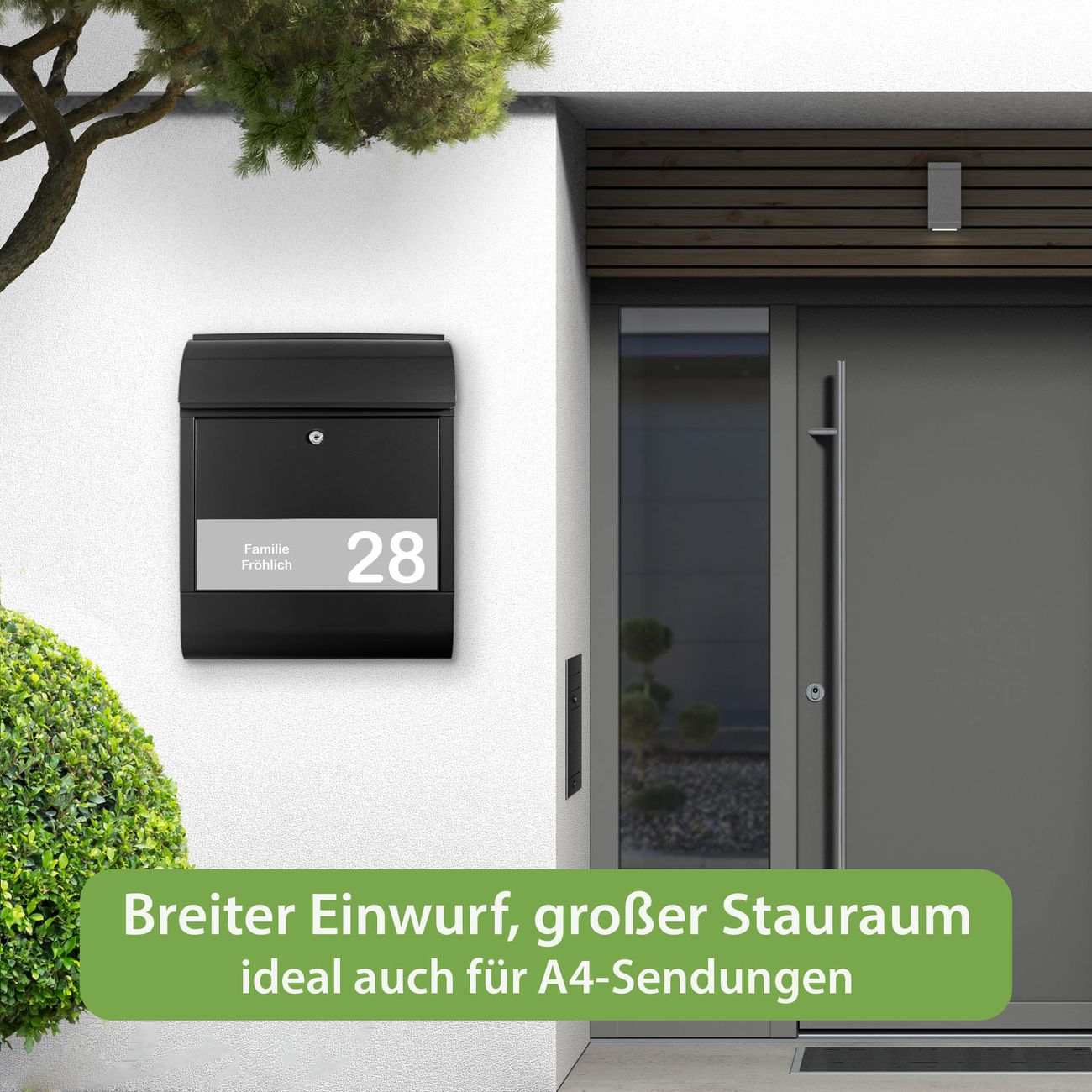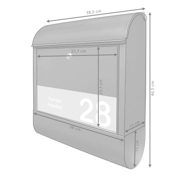 Großer Stahl Briefkasten Motiv Weiß auf Grau kompakt