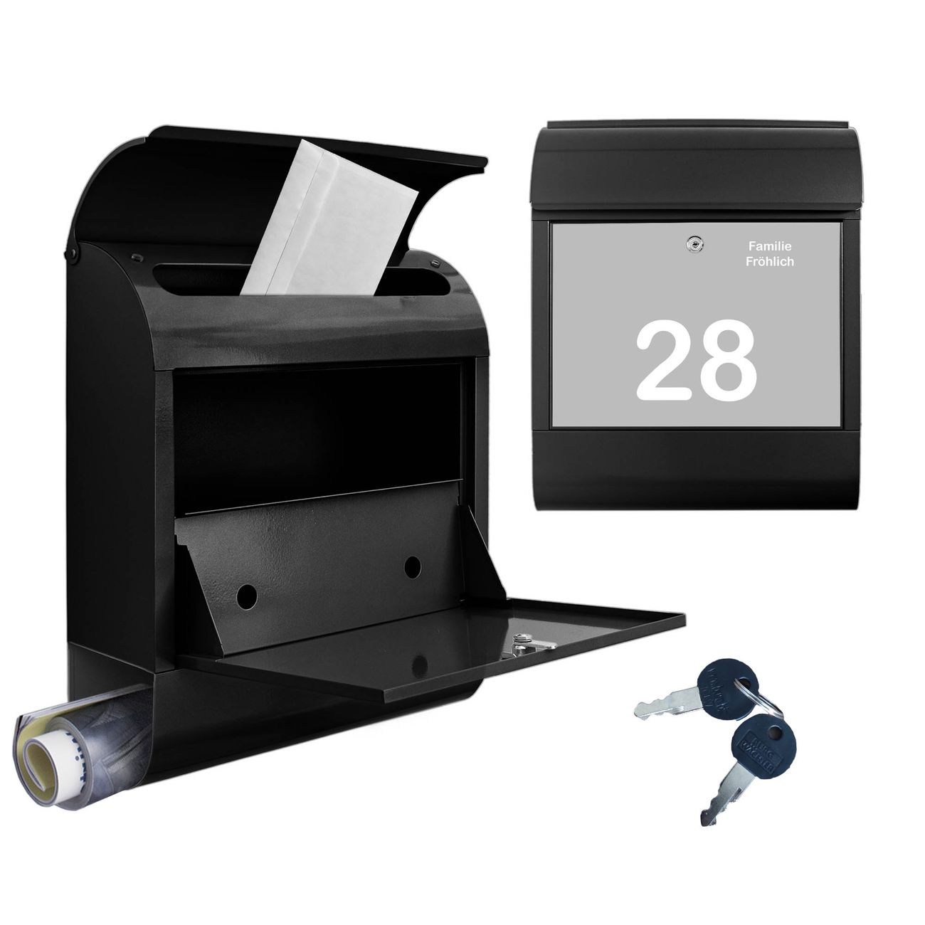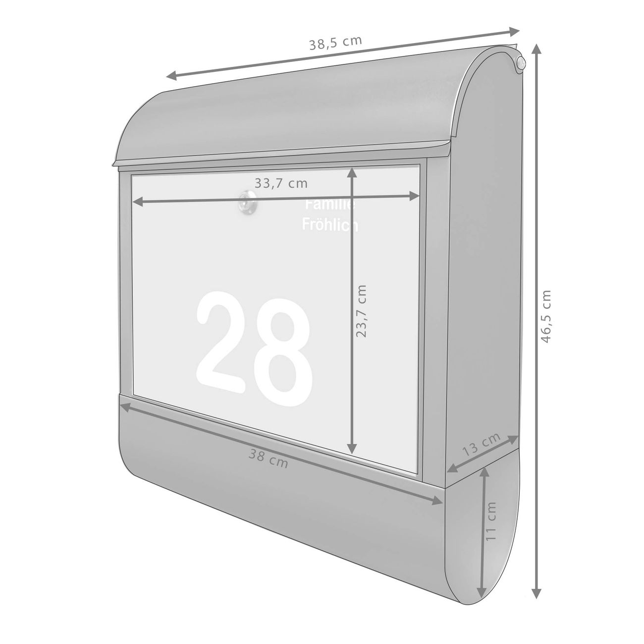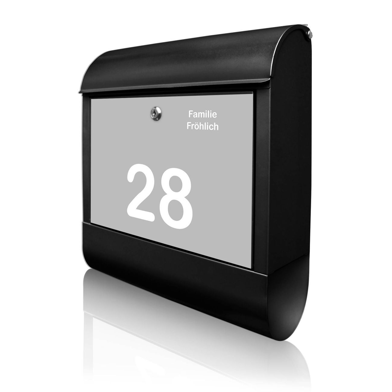 Großer Stahl Briefkasten Motiv Weiß auf Grau