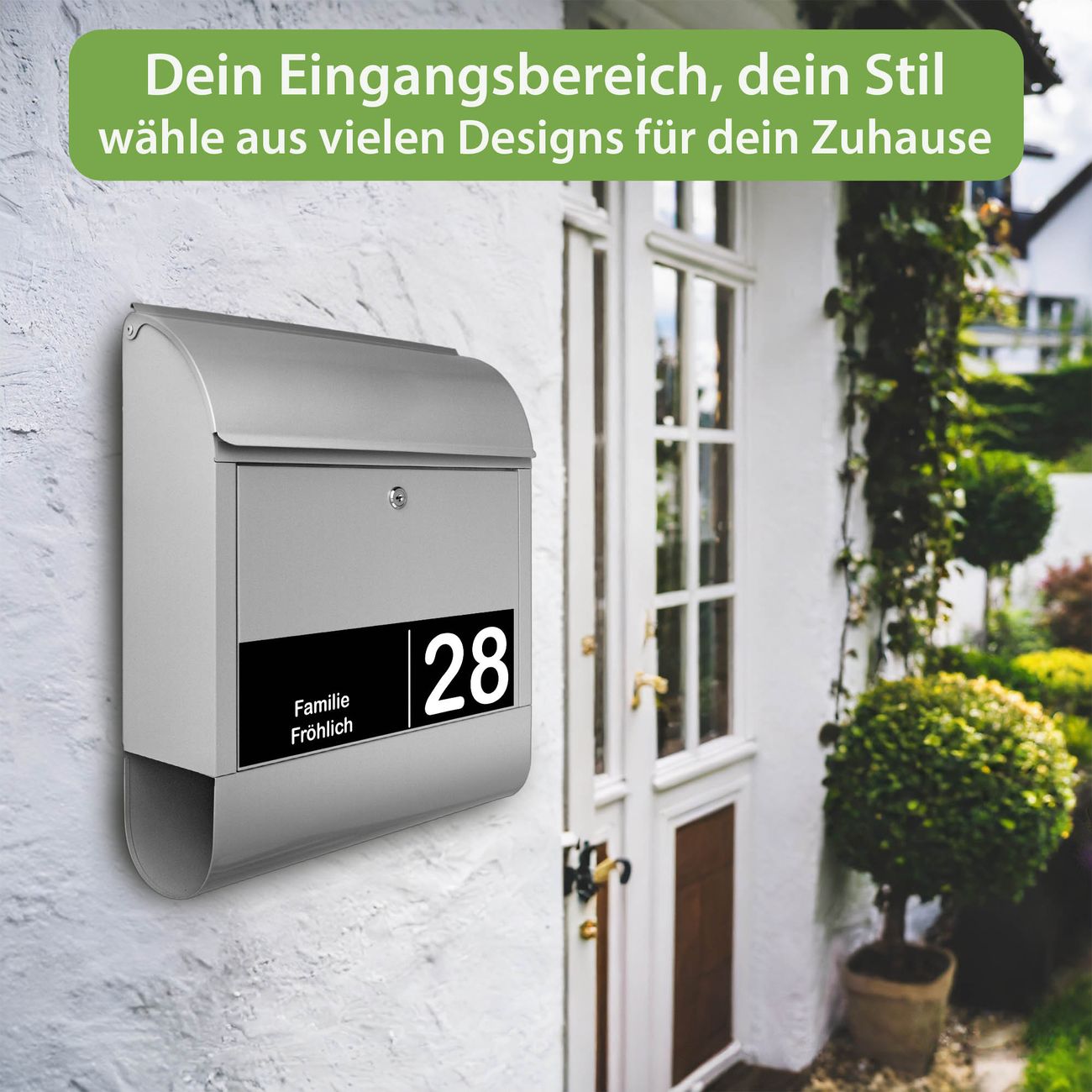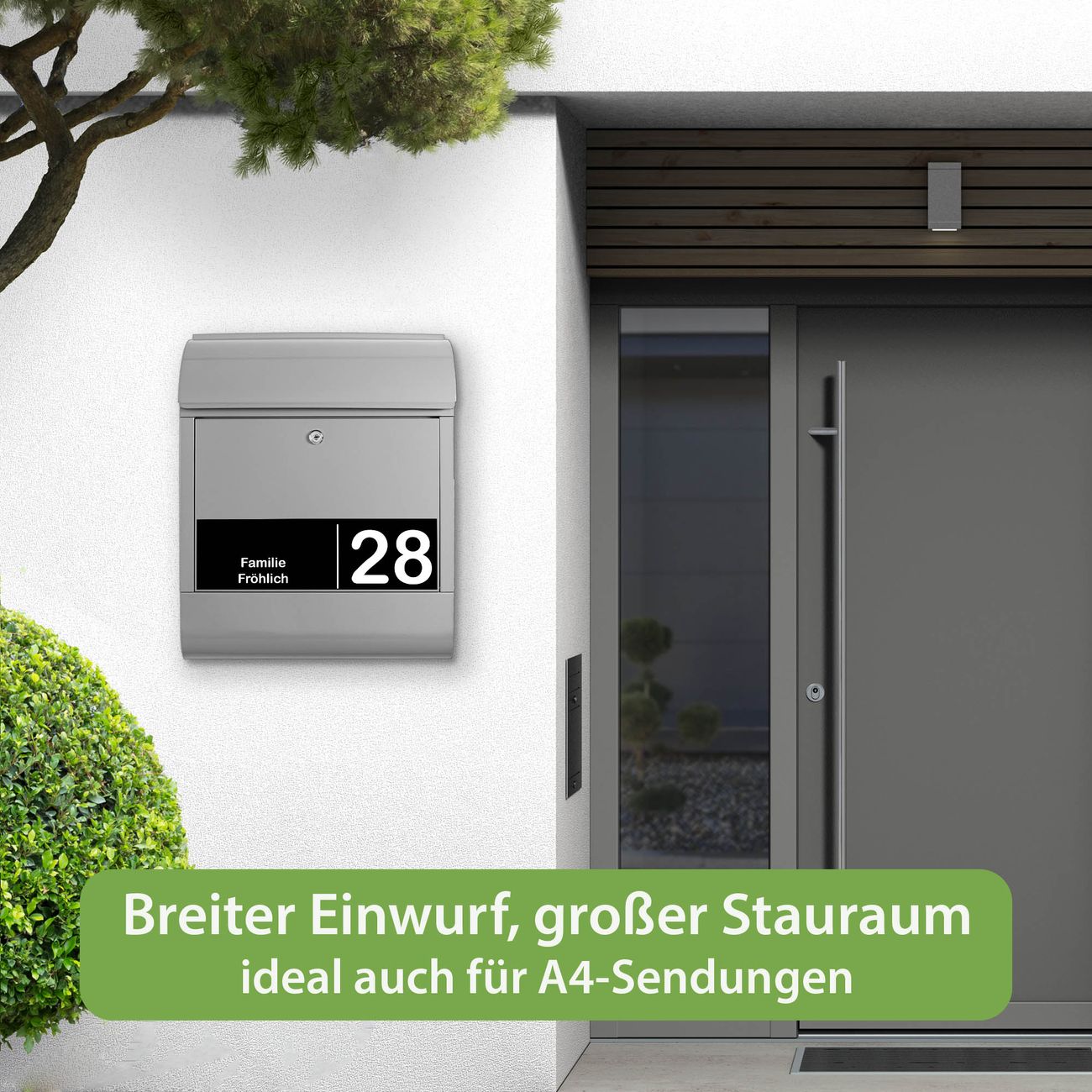 Großer Stahl Briefkasten Motiv Weiß auf Schwarz 2 kompakt