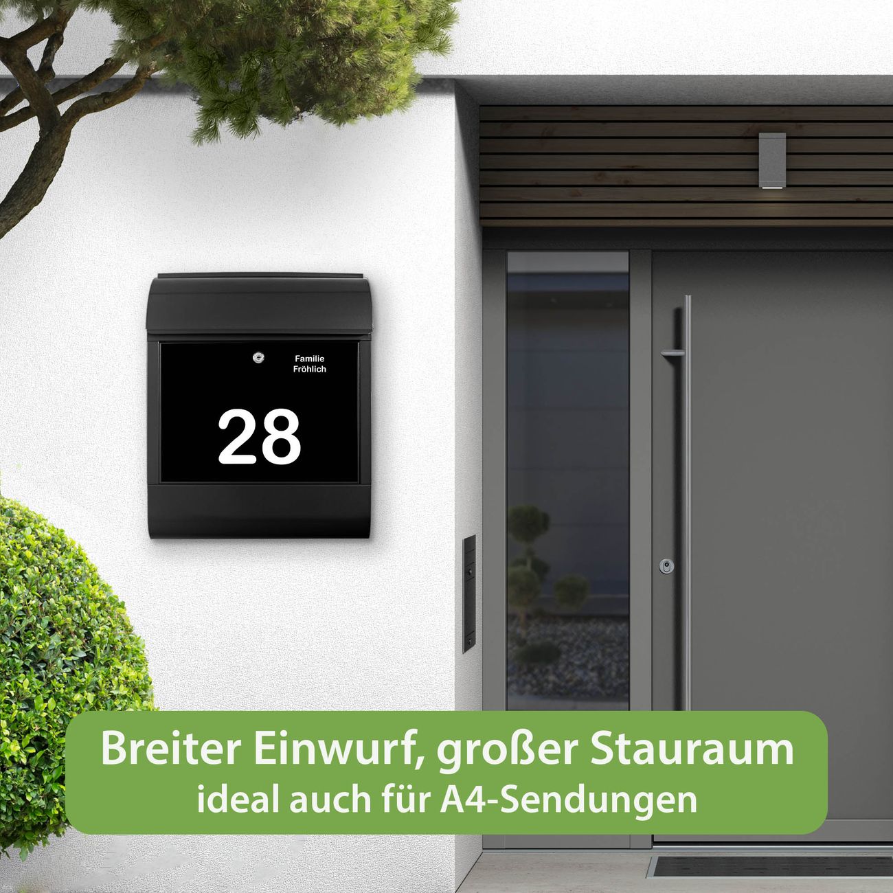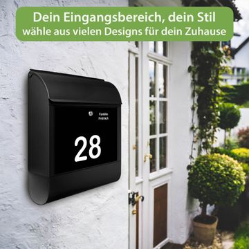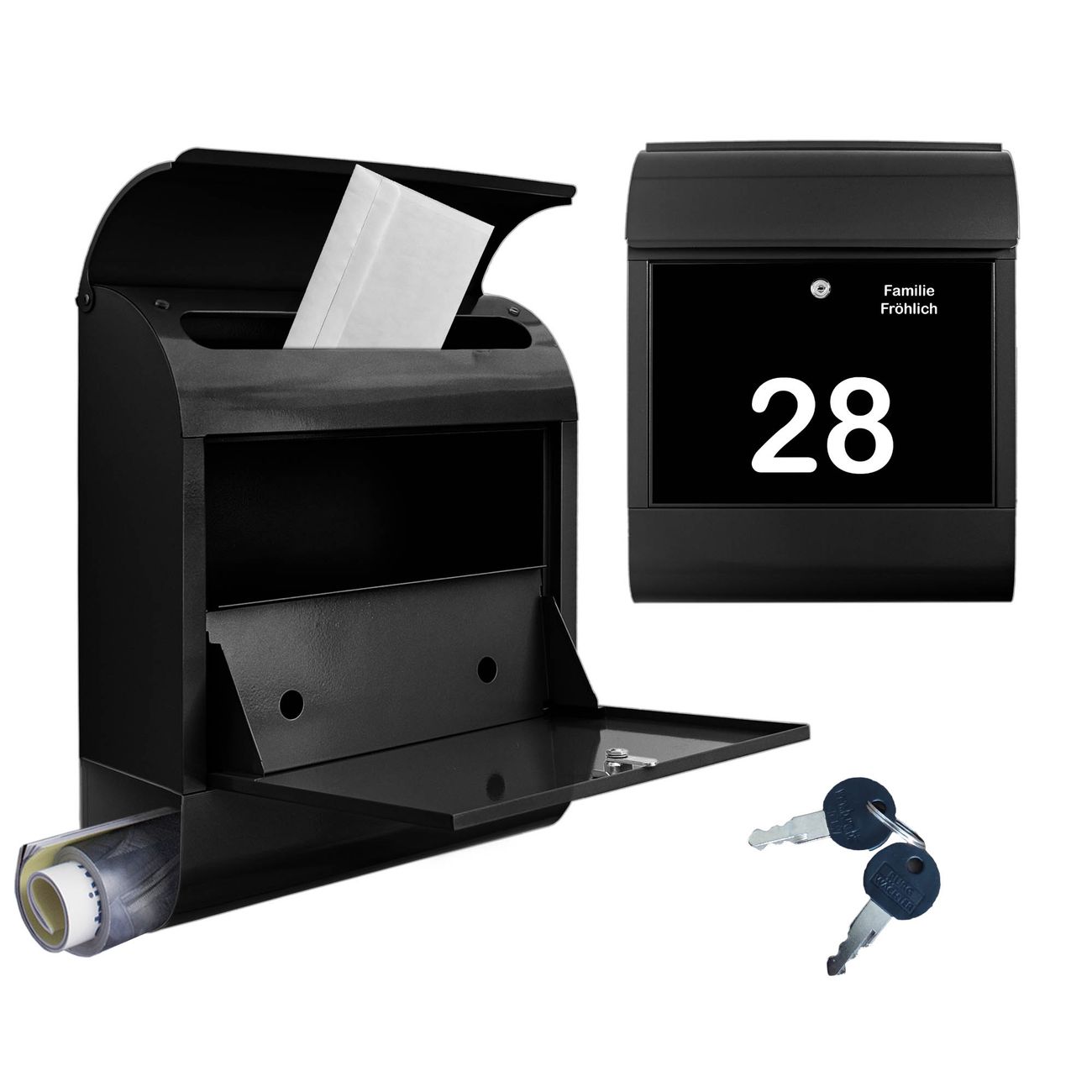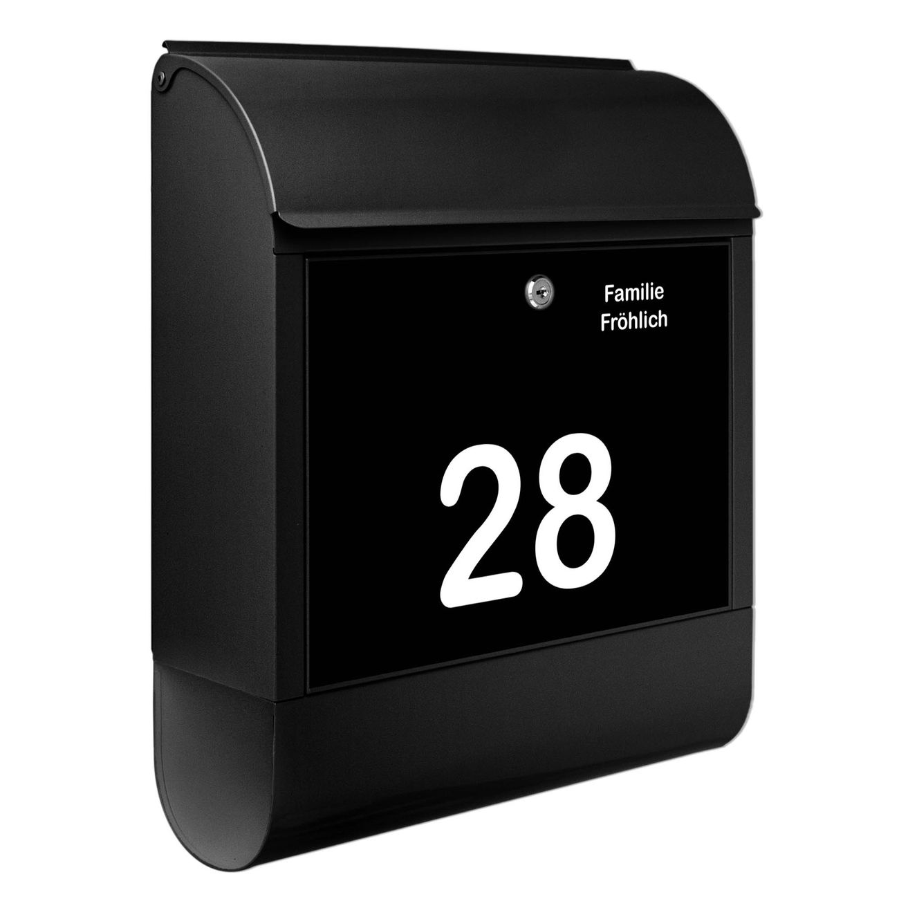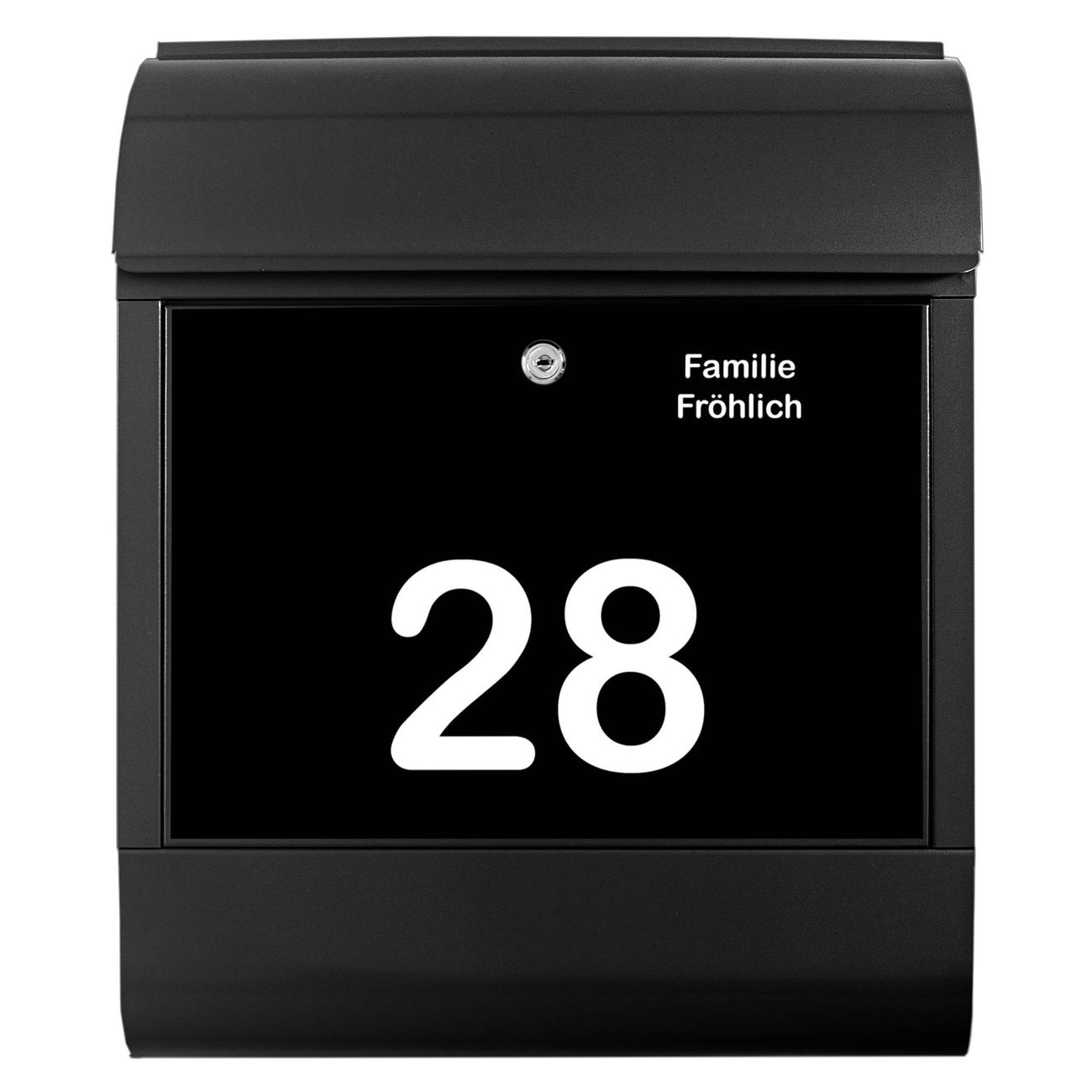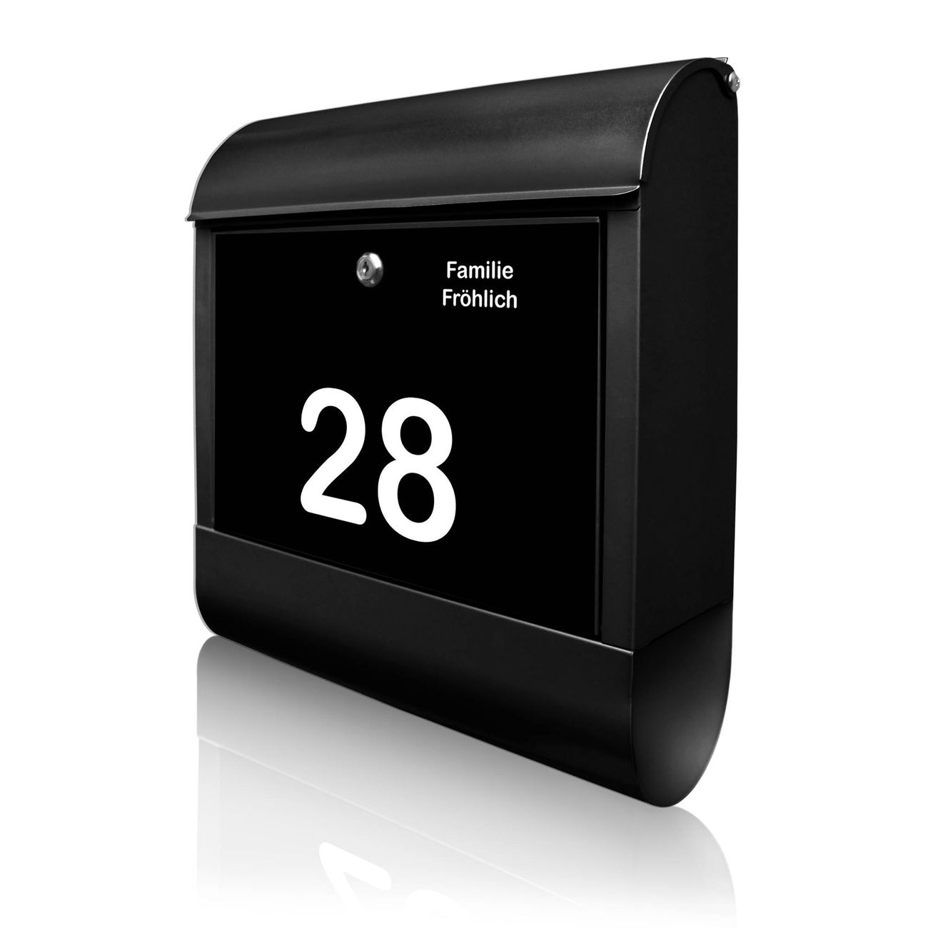 Großer Stahl Briefkasten Motiv Weiß auf Schwarz