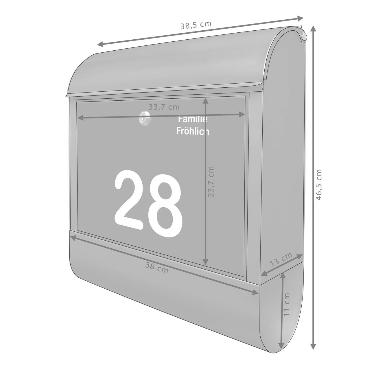 DESIGN: Der Postkasten mit Motiv Motiv Weiß auf Schwarz hat ein sehr ansprechendes und ausgefallenes Design, damit entlocken Sie Ihren Nachbarn und dem Postboten ein Lächeln. Heben Sie Sich von der tristen grauen Masse ab, ohne auf Funktionalität zu verzichten. DETAILS: Der Postkasten besteht aus pulverbeschichtetem Stahl. Er ist 38x46x12,5cm groß. Das Motiv besteht aus einer wetter- und UV-resistenten Folie, die mit einem Schutzlaminat überzogen ist, sodass der Briefkasten zusätzlich vor Kratzern geschützt ist. Der Briefkasten wird mit Montagematerial, zusätzlich zwei Schlüssel sowie einer Bohrschablone geliefert. NUTZEN: Sie können diesen Briefkasten sowohl als Wandbriefkasten montieren oder einen passenden Ständer kaufen und als Standbriefkasten einbetonieren. Die Größe bietet genügend Platz für Sendungen aller Art, der Einwurf fasst auch größere A4 Sendungen. BANJADO: Ihr Briefkasten wird in Sachsen in einer kleinen Manufaktur von Hand veredelt. Die Motivfolie ist lösungsmittelfrei und schutzlaminiert für einen langen Halt. Wir legen großen Wert auf die Verbindung von Funktionalität und Design. Sie erhalten Handarbeit aus Sachsen.