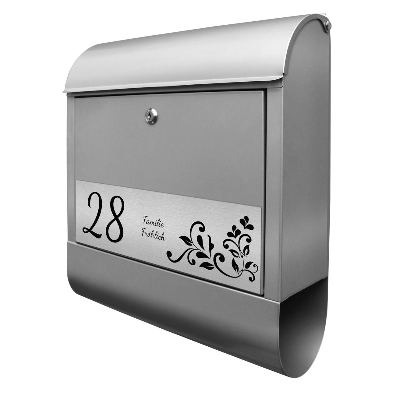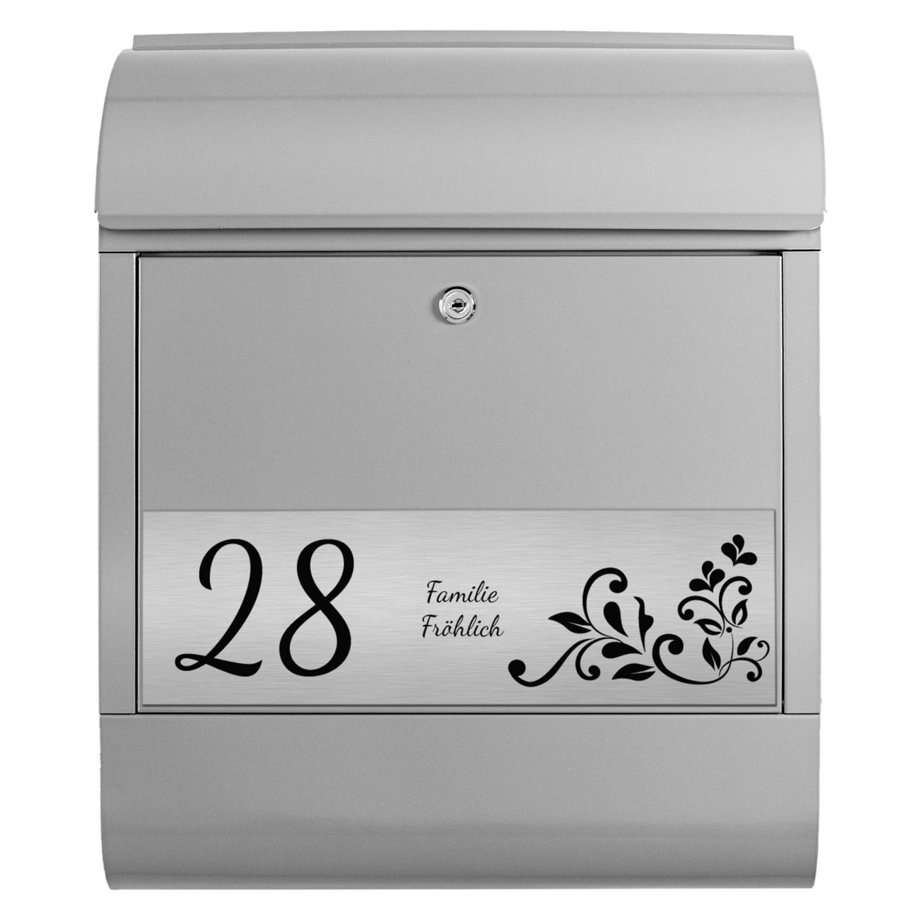 Der Postkasten besteht aus pulverbeschichtetem Stahl. Er ist 38x47x13cm groß. Die Gravur Platte besteht aus einem Laminat auf Acrylbasis mit authentisch metallischem Erscheinungsbild und ist wetter- sowie UV-resistent. Diese wir bereits von uns fest mit dem Briefkasten verklebt. Der Briefkasten wird mit Montagematerial, zwei Schlüsseln sowie einer Bohrschablone geliefert. Sie können diesen Briefkasten sowohl als Wandbriefkasten montieren oder einen passenden Briefkastenstandfuß kaufen und als Standbriefkasten einbetonieren. Auch für die Montage an einem Zaun bieten wir das passende Zubehör an. Die Größe bietet genügend Platz für Sendungen aller Art, der Einwurf fasst auch größere A4 Sendungen.