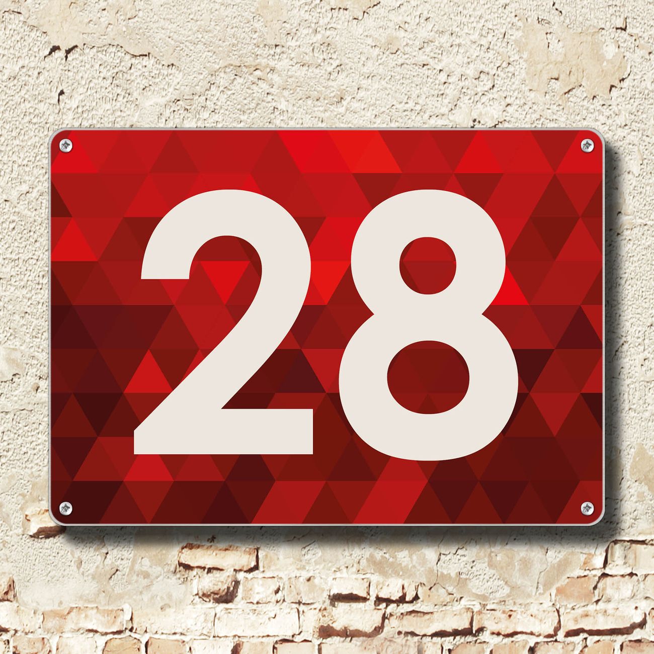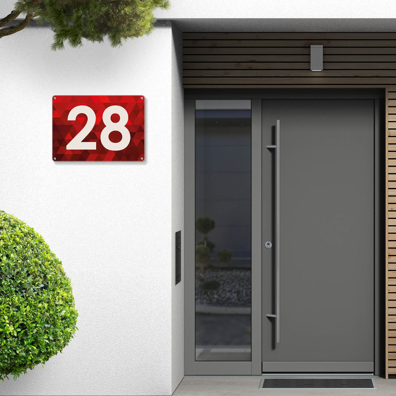 Hausnummernschild Edelstahl personalisierbar Dreiecke Rot