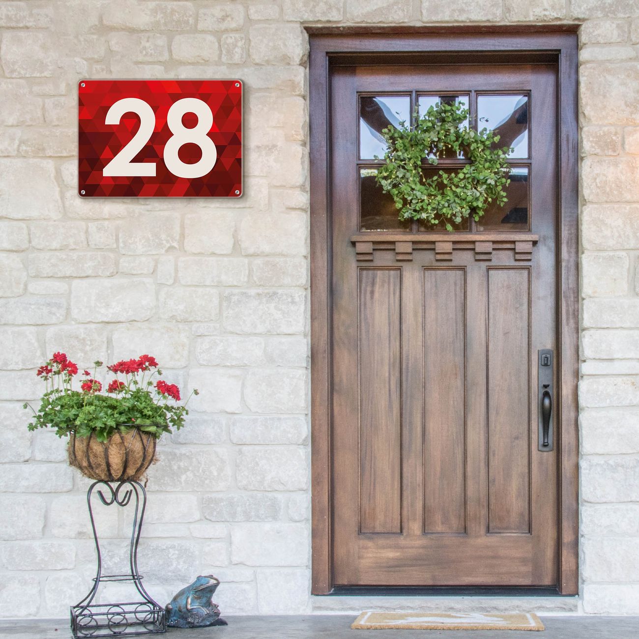 Das banjado Hausnummer Schild ist mit 4 Schrauben einfach am Haus anzubringen und zeigt dank der Größe stilsicher Ihre Hausnummer oder auch individuell Hausnummer mit Straßennamen. Das Hausschild personalisiert können Sie ganz auf Ihre Wünsche anpassen. Wir bieten verschiedenste Motive an. Dazu können Sie das Schild mit Ihrer Hausnummer anpassen.