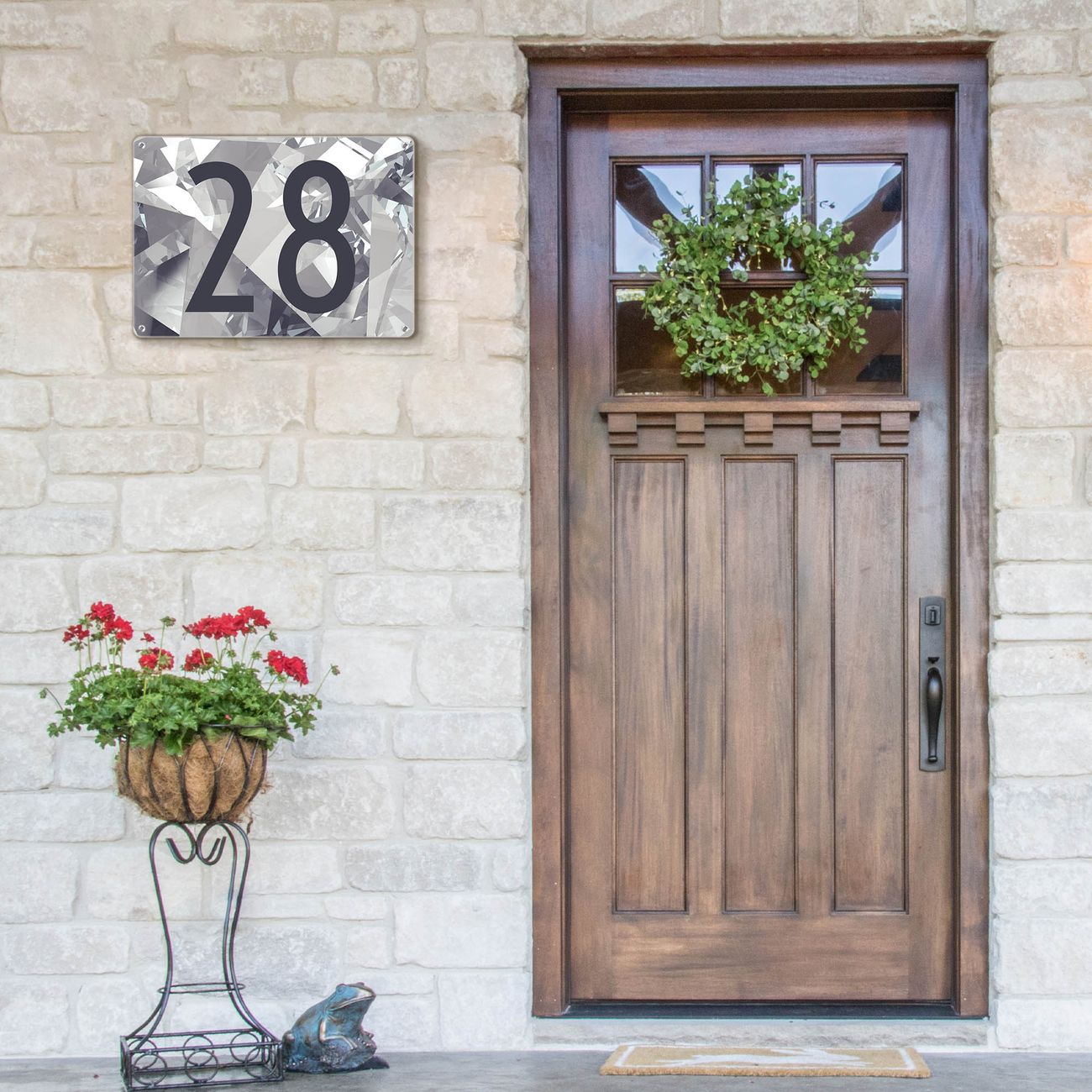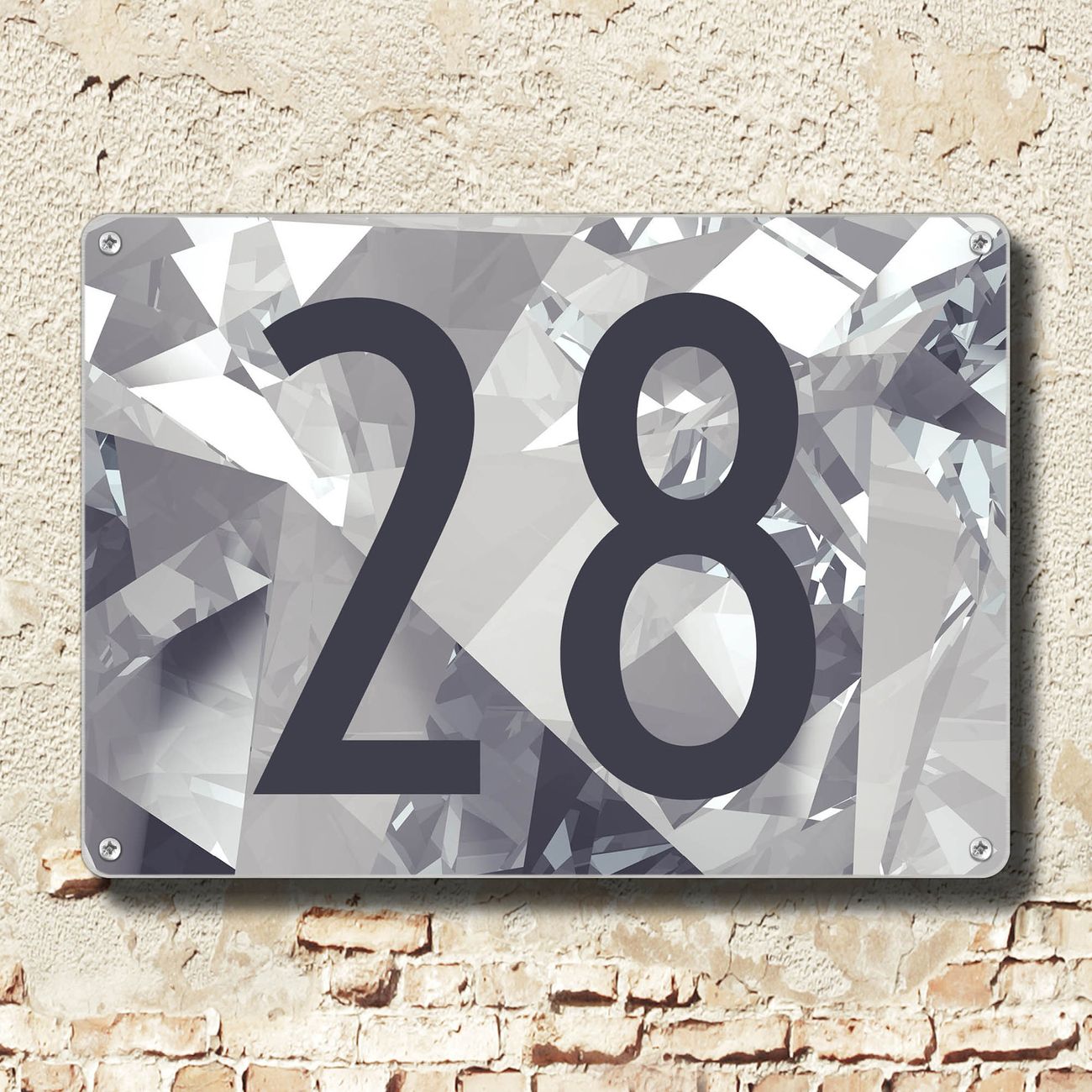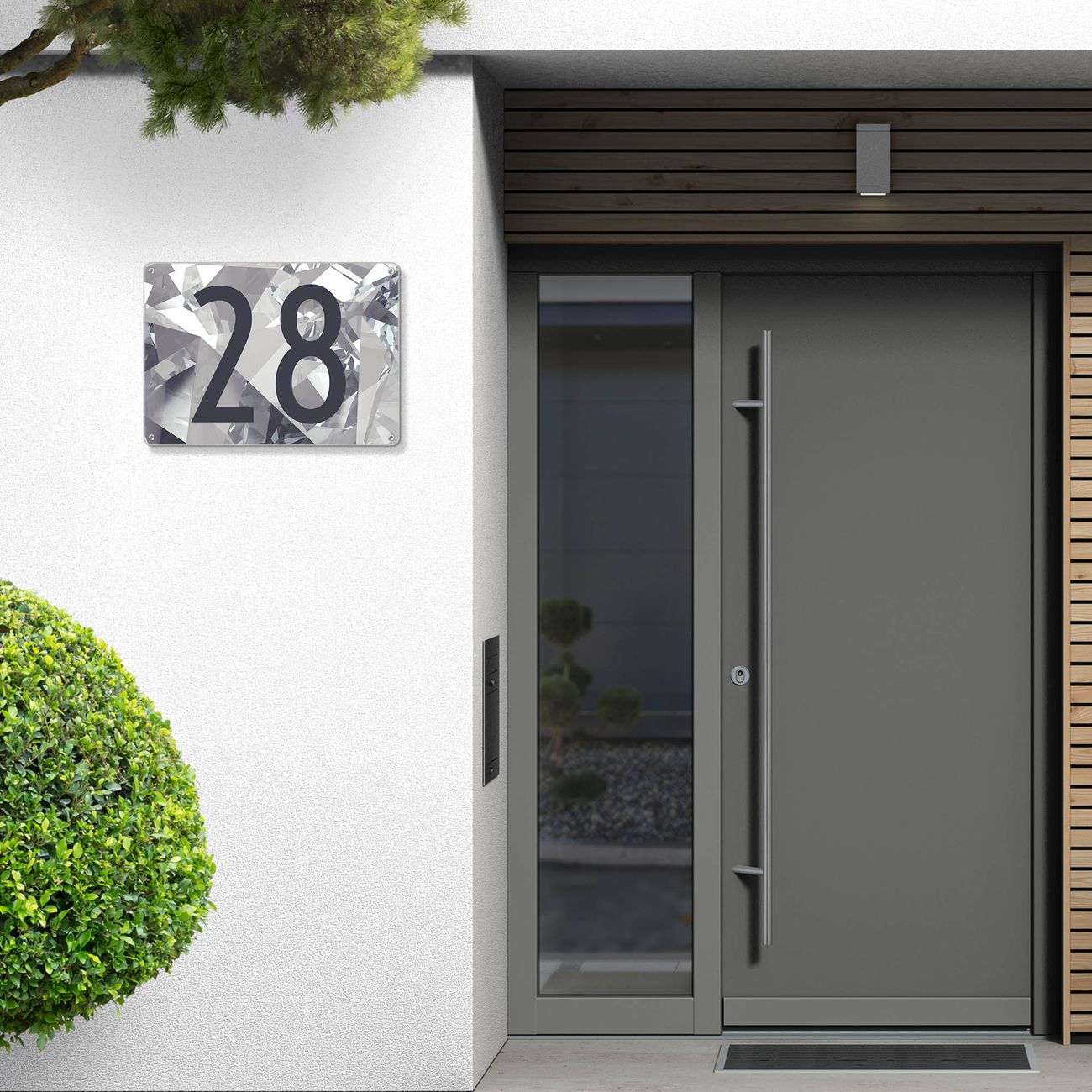Hausnummernschild Edelstahl personalisierbar Facetten Monochrome