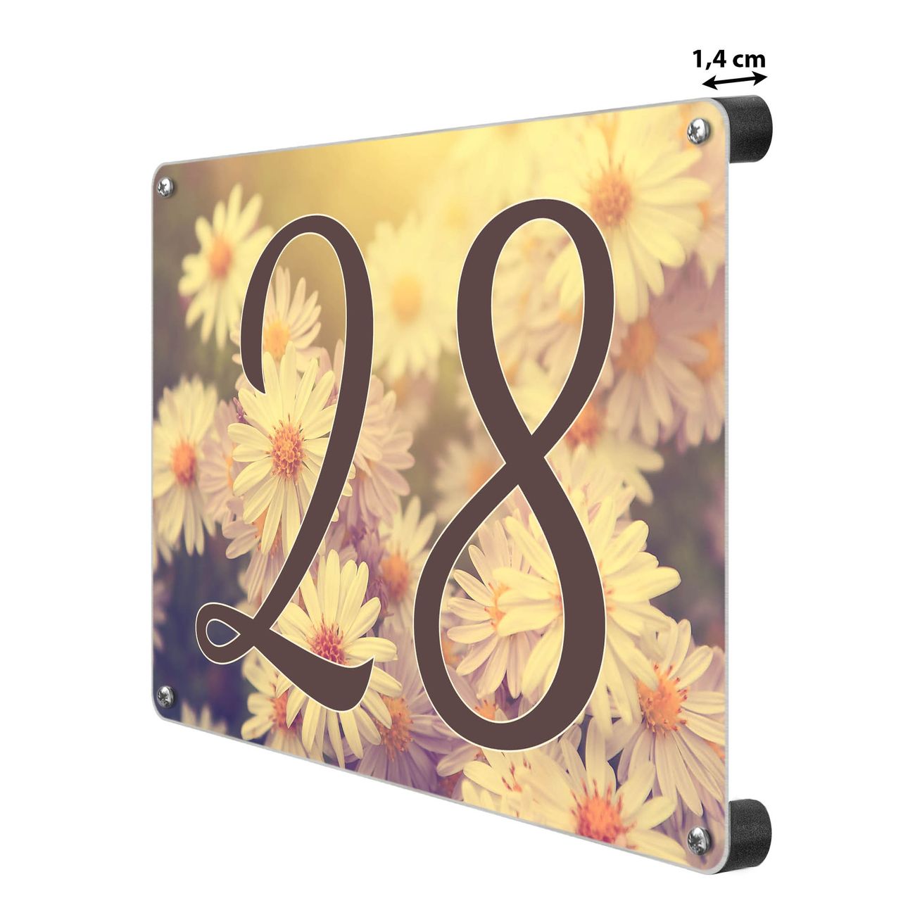 Hausnummernschild Edelstahl personalisierbar Gerbera 3