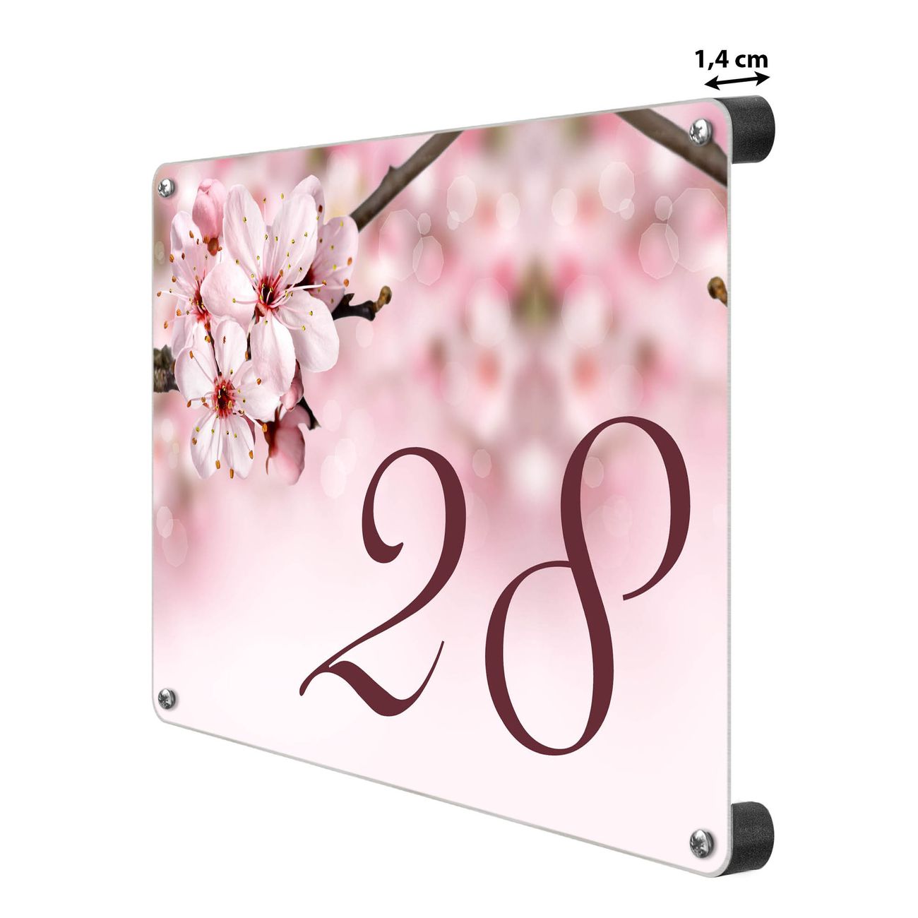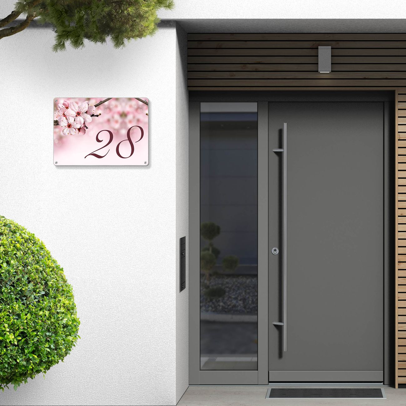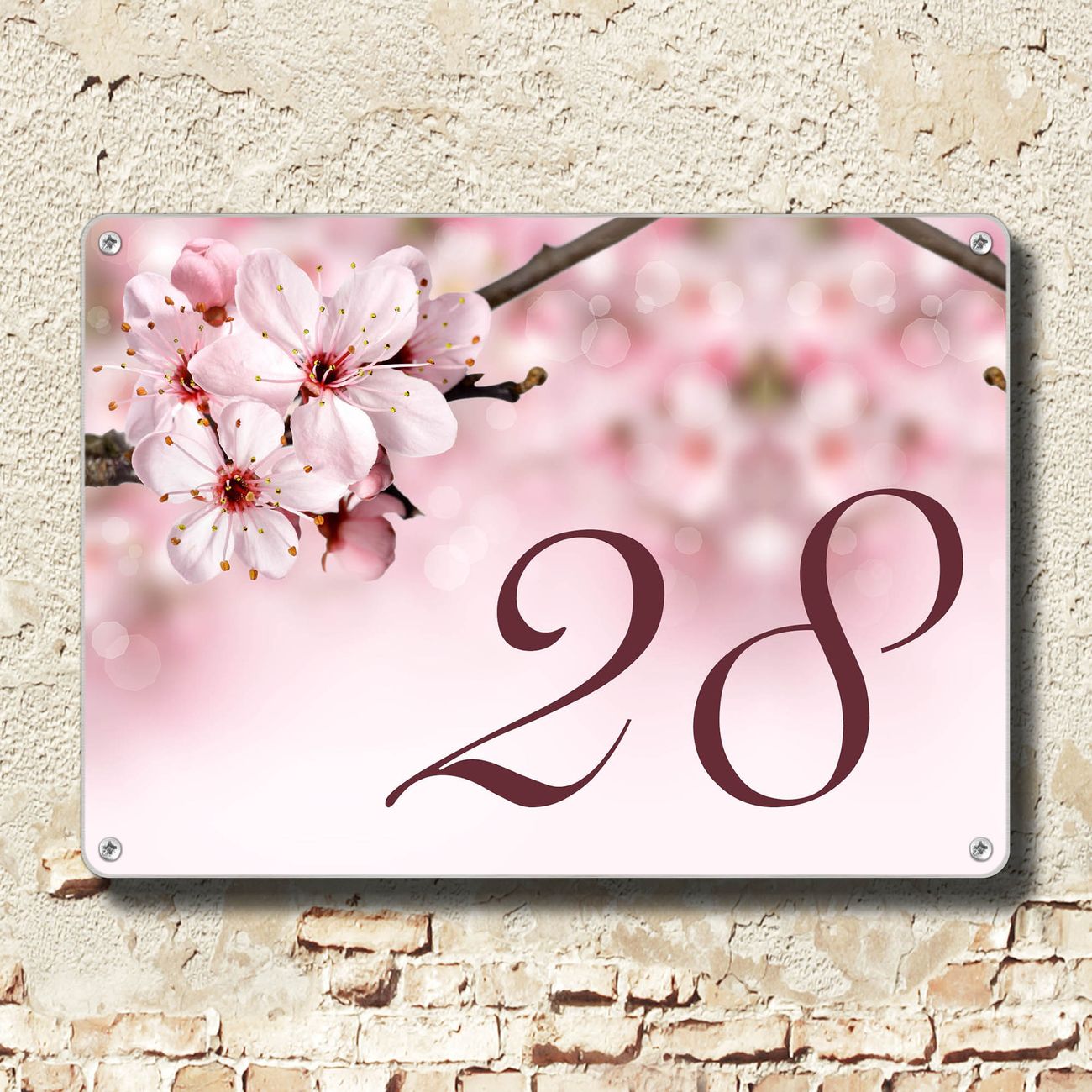 Hausnummernschild Edelstahl personalisierbar Japanische Kirsche