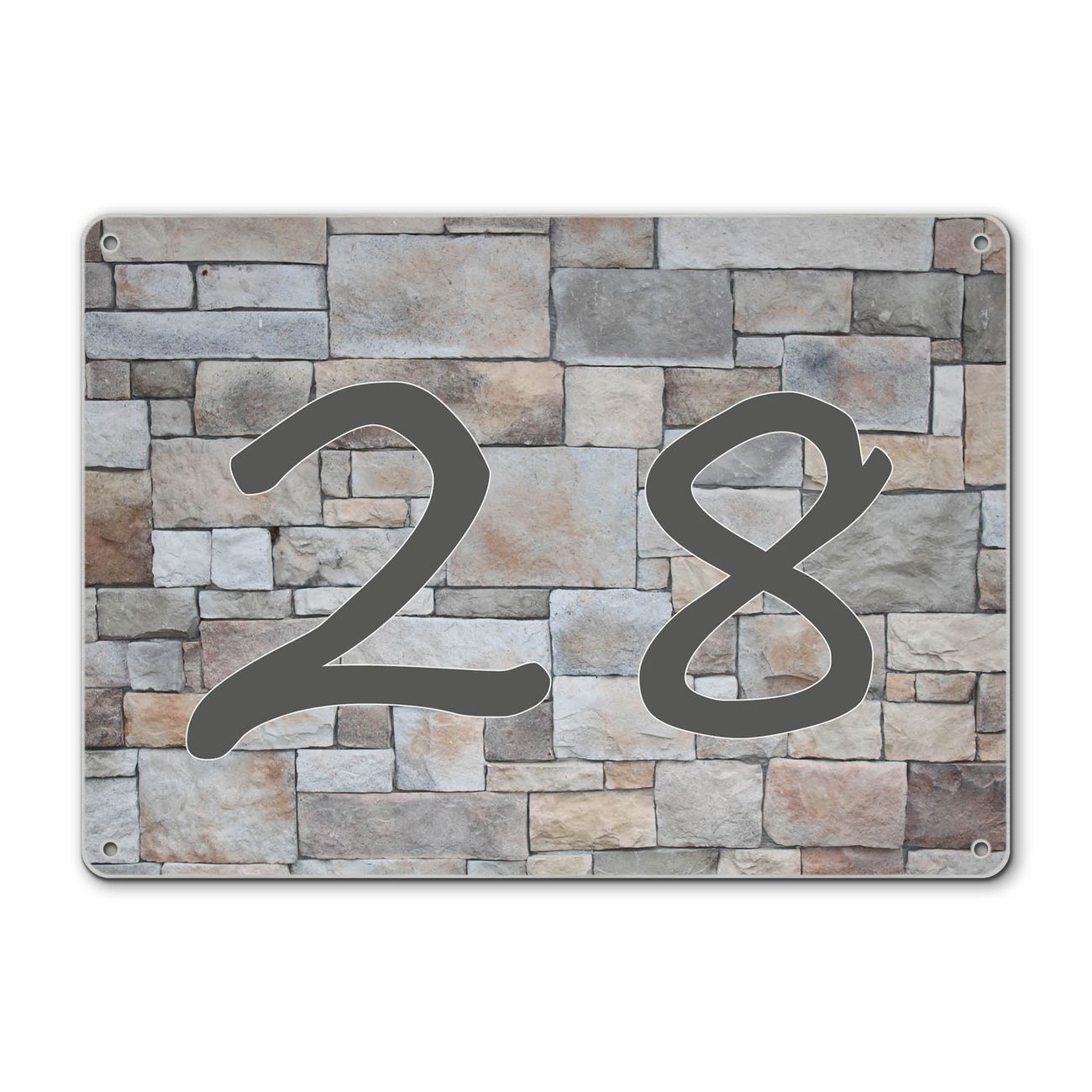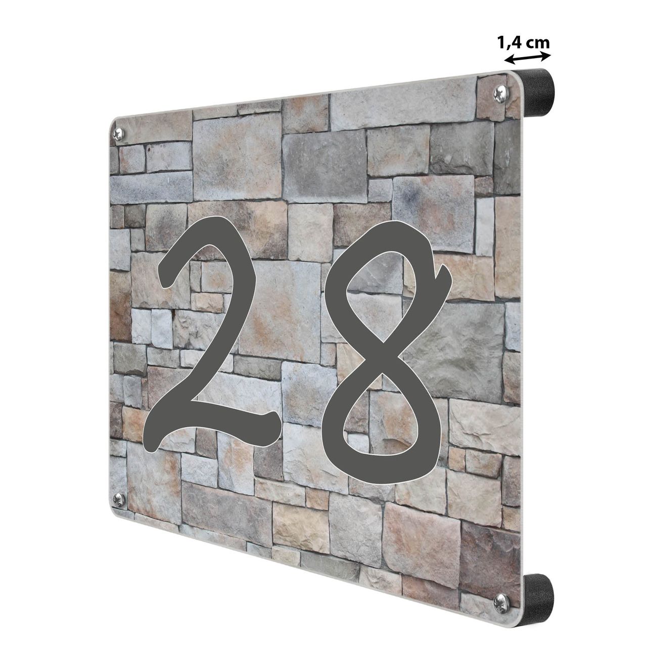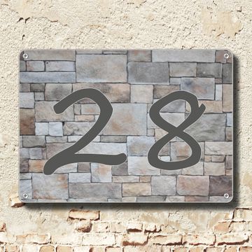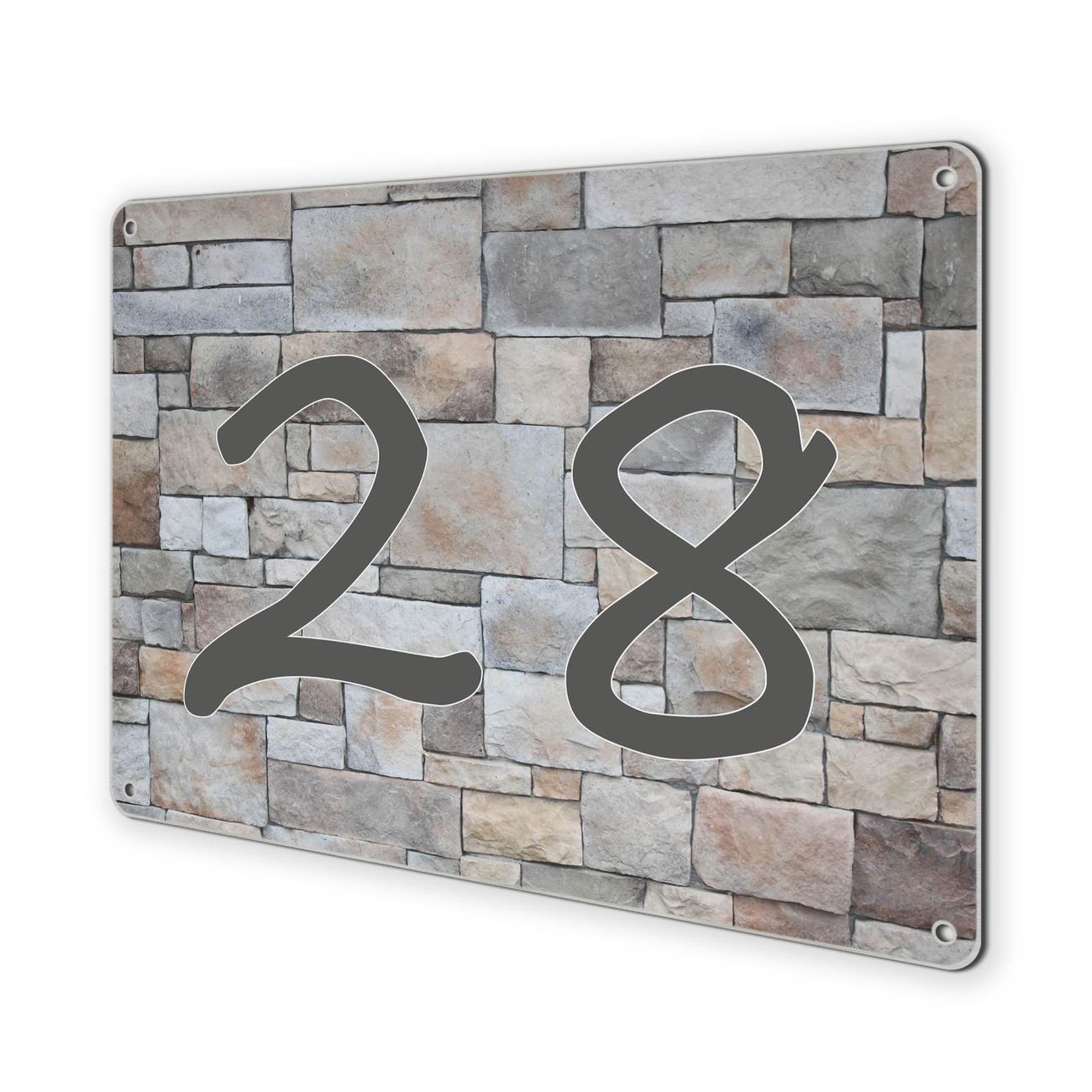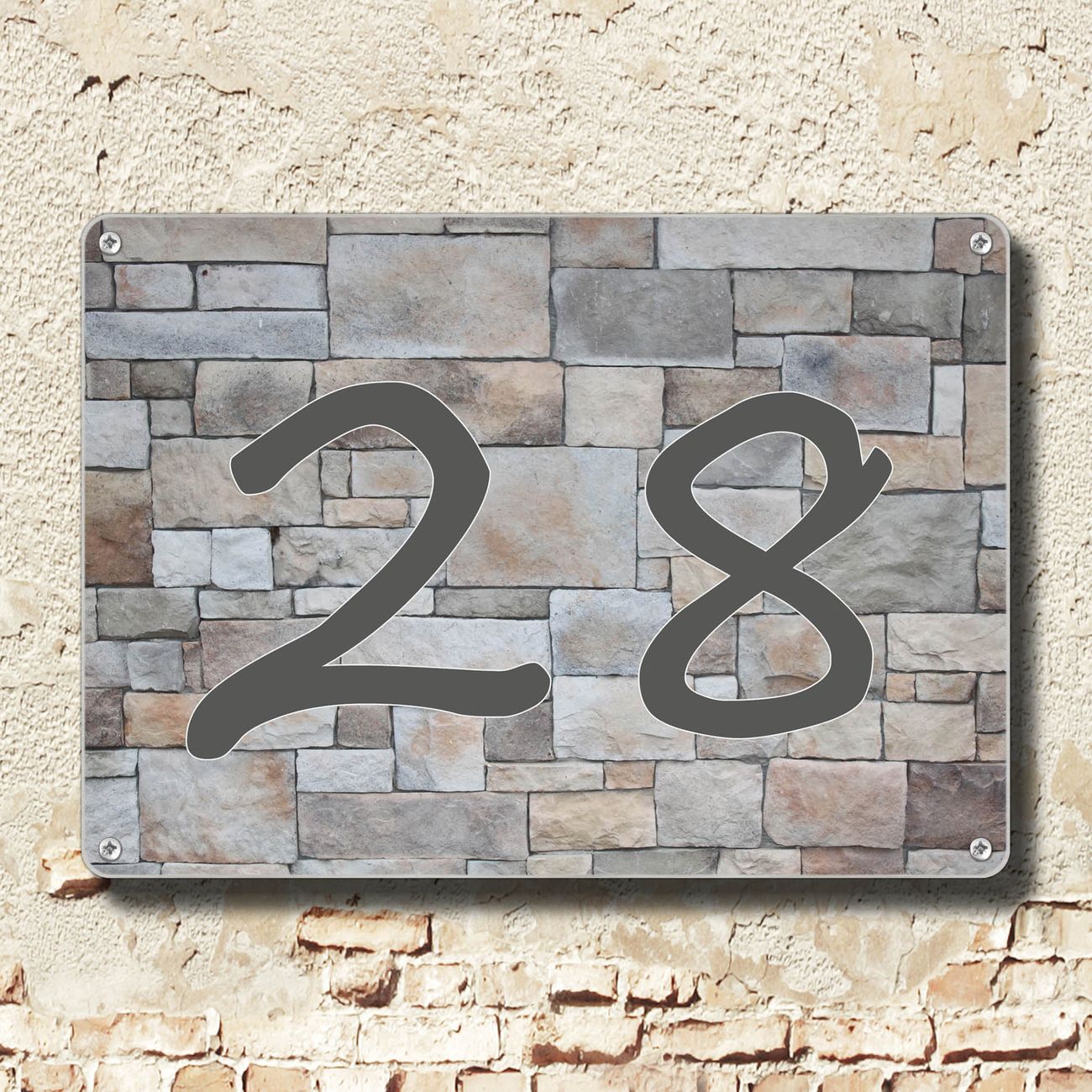 Hausnummernschild Edelstahl personalisierbar Natursteinmauer
