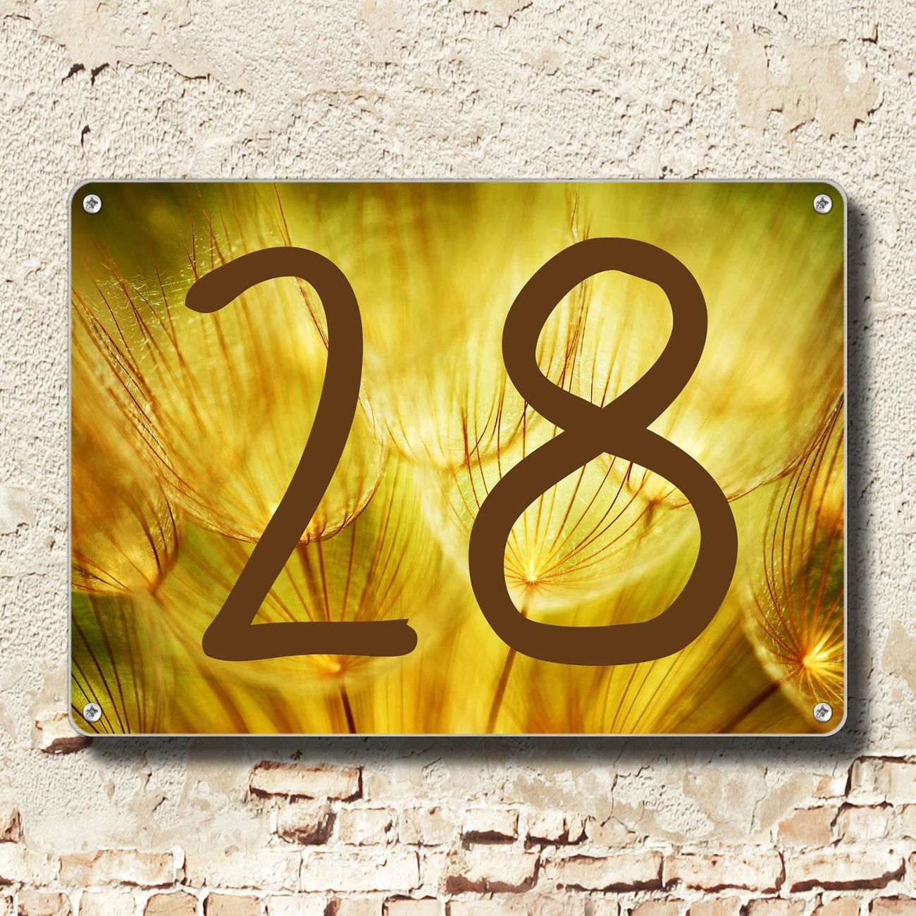 Hausnummernschild Edelstahl personalisierbar Pusteblumen Gold