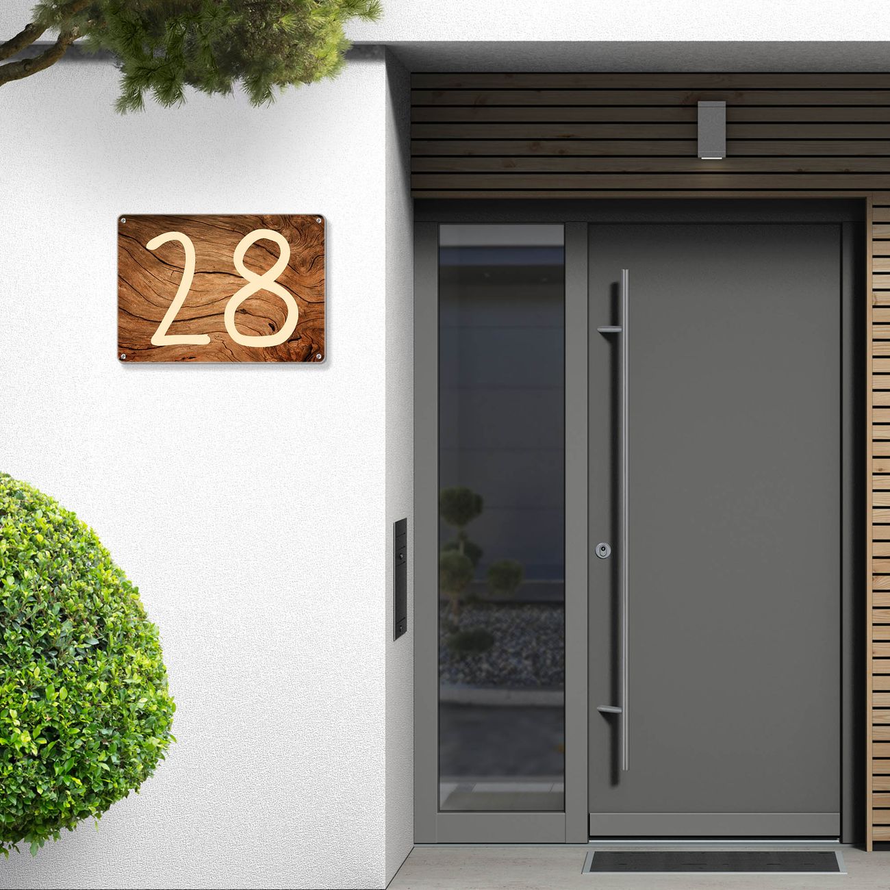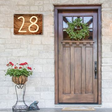 Hausnummernschild Edelstahl personalisierbar Trockenes Holz
