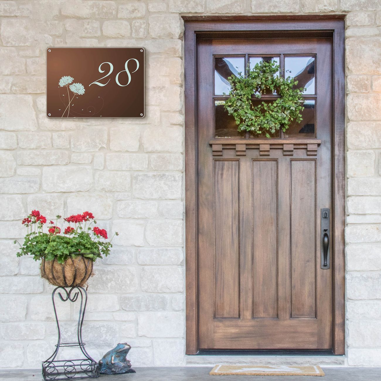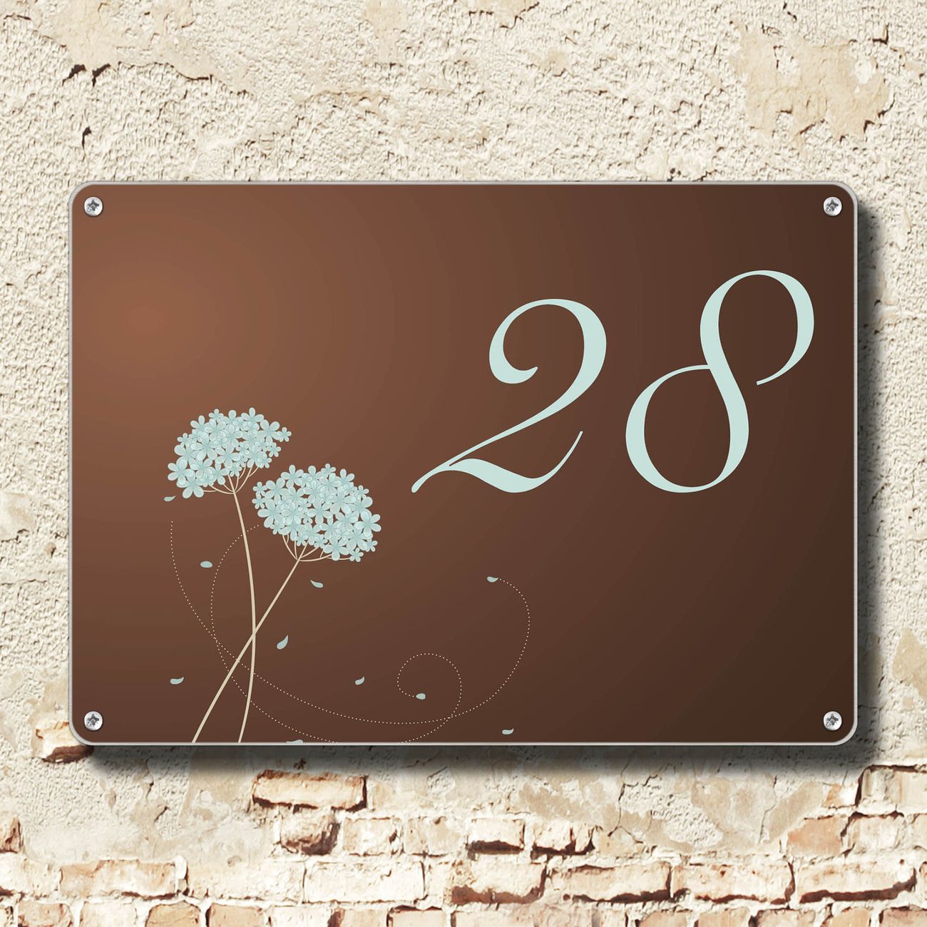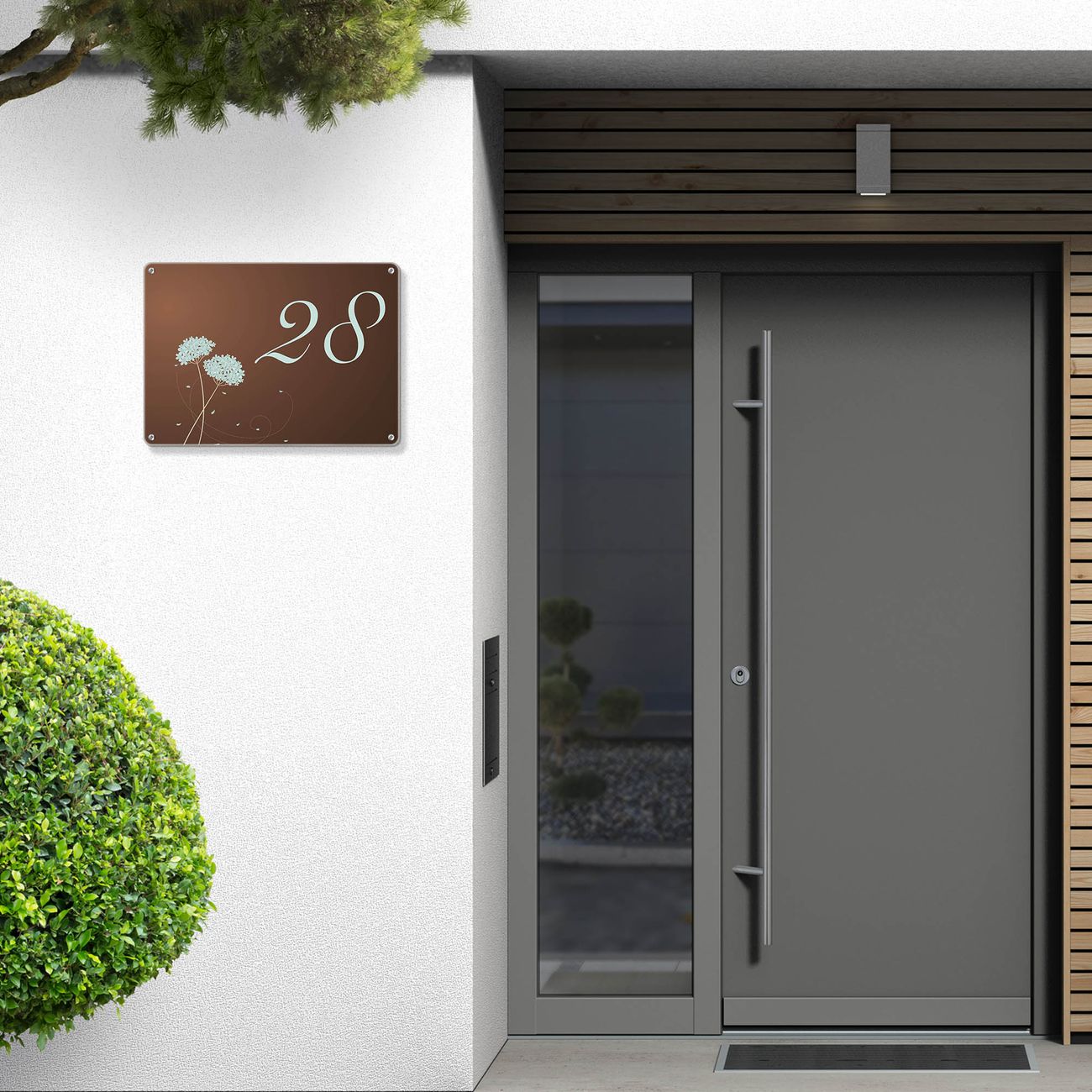 Das banjado Hausnummer Schild ist mit 4 Schrauben einfach am Haus anzubringen und zeigt dank der Größe stilsicher Ihre Hausnummer oder auch individuell Hausnummer mit Straßennamen. Das Hausschild personalisiert können Sie ganz auf Ihre Wünsche anpassen. Wir bieten verschiedenste Motive an. Dazu können Sie das Schild mit Ihrer Hausnummer anpassen.