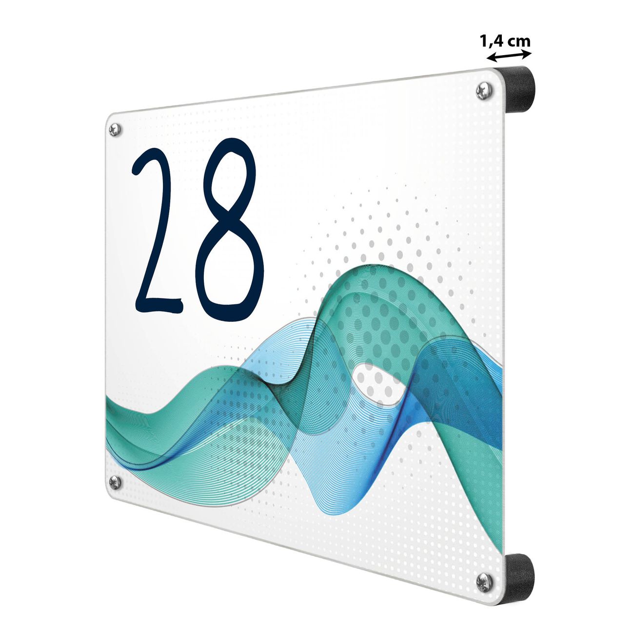 Das banjado Hausnummer Schild ist mit 4 Schrauben einfach am Haus anzubringen und zeigt dank der Größe stilsicher Ihre Hausnummer oder auch individuell Hausnummer mit Straßennamen. Das Hausschild personalisiert können Sie ganz auf Ihre Wünsche anpassen. Wir bieten verschiedenste Motive an. Dazu können Sie das Schild mit Ihrer Hausnummer anpassen.