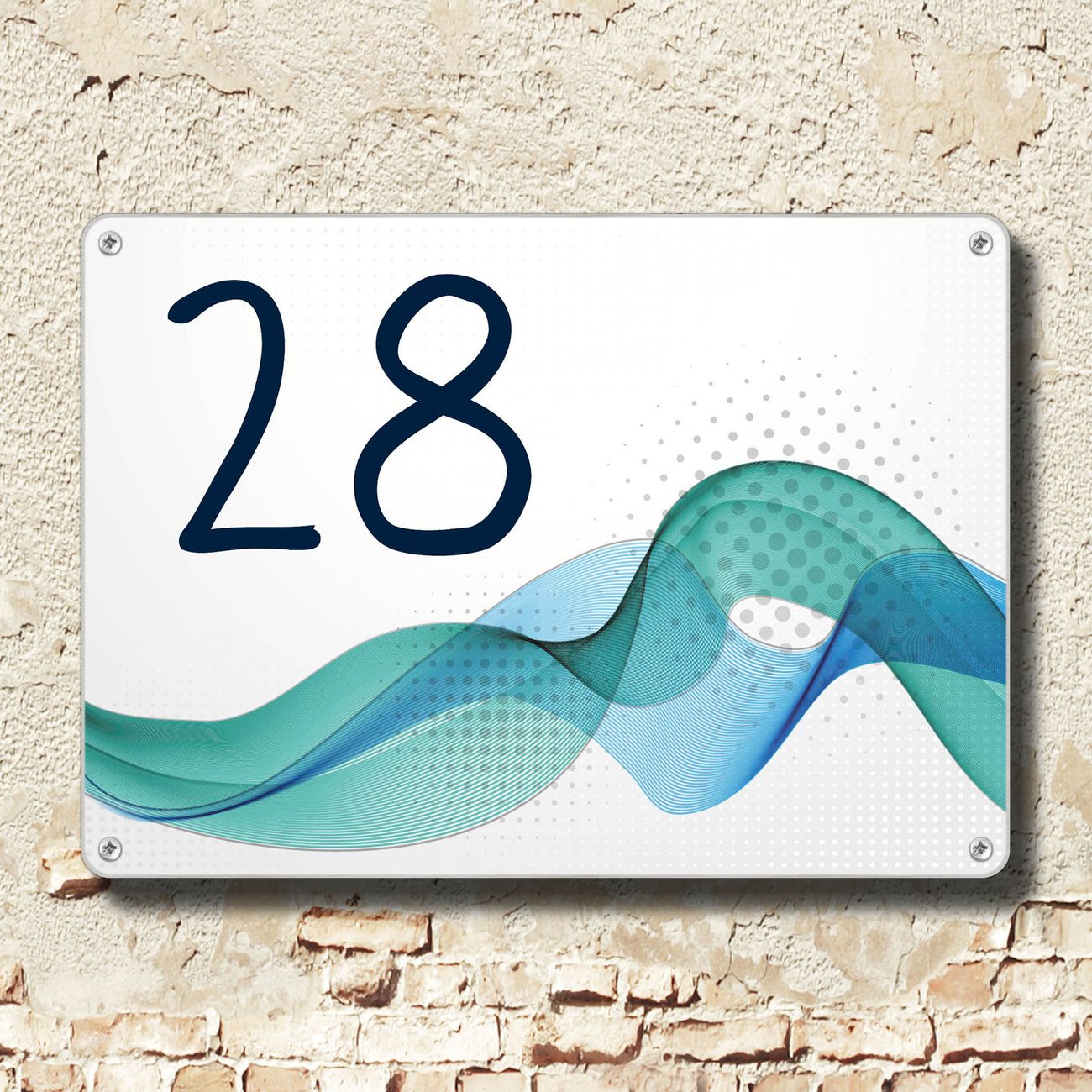 Hausnummernschild Edelstahl personalisierbar WT Blaue Welle
