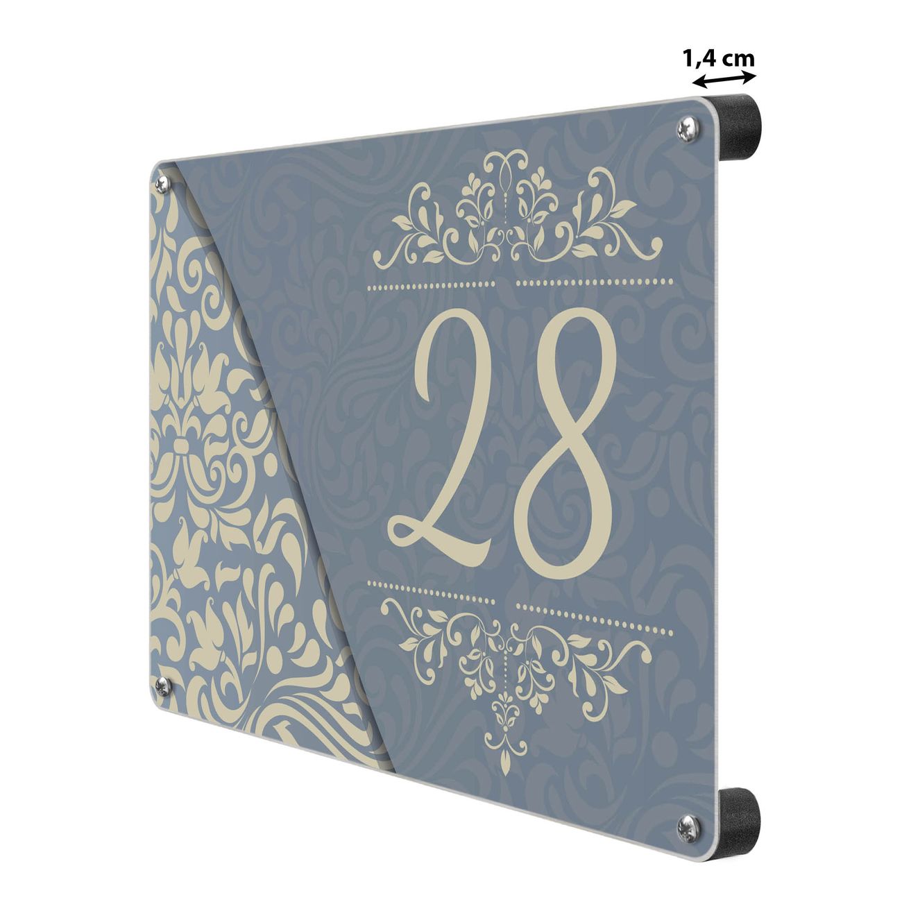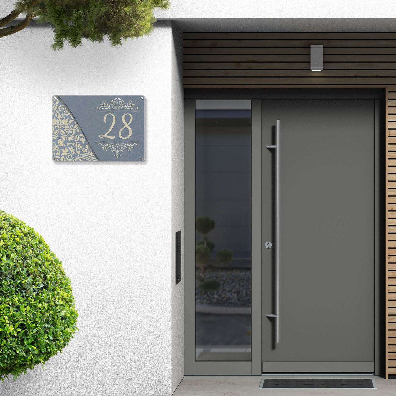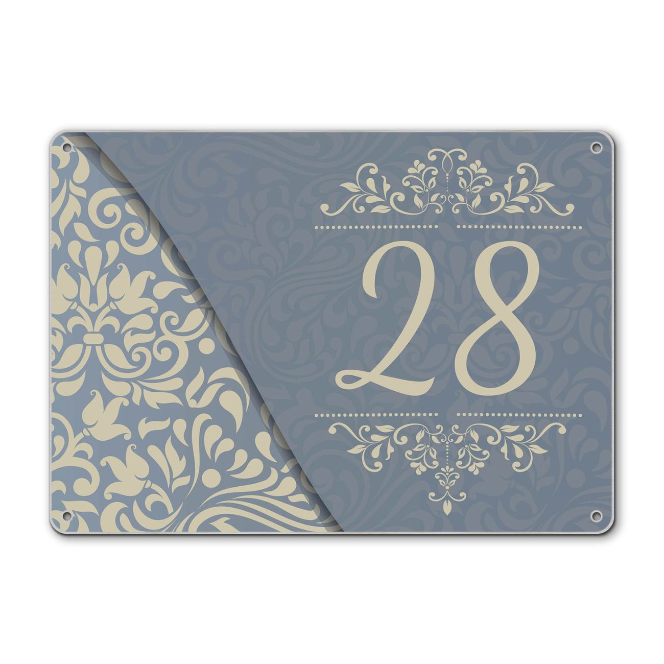 Hausnummernschild Edelstahl personalisierbar WT Blaues Ornament