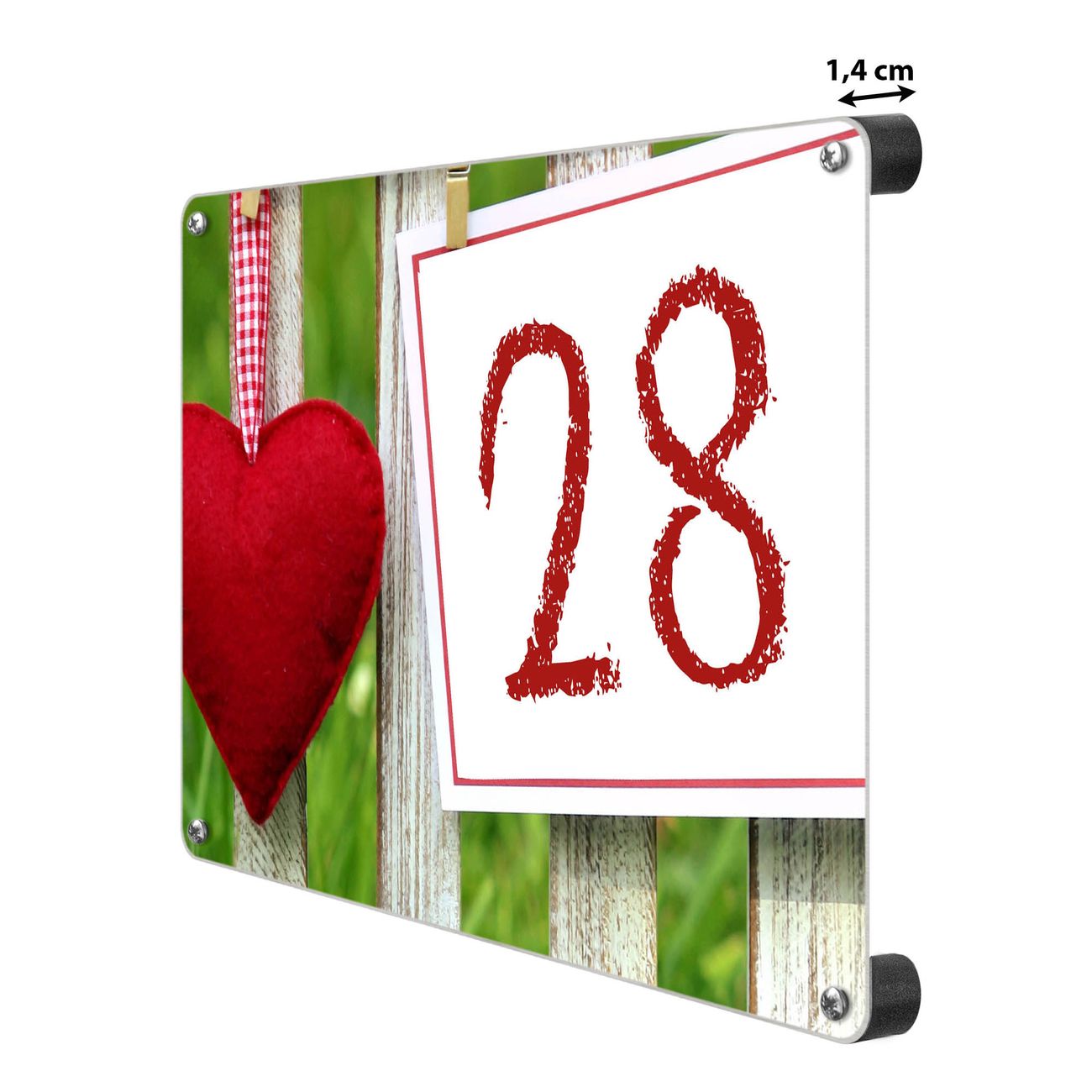 Das banjado Hausnummer Schild ist mit 4 Schrauben einfach am Haus anzubringen und zeigt dank der Größe stilsicher Ihre Hausnummer oder auch individuell Hausnummer mit Straßennamen. Das Hausschild personalisiert können Sie ganz auf Ihre Wünsche anpassen. Wir bieten verschiedenste Motive an. Dazu können Sie das Schild mit Ihrer Hausnummer anpassen.