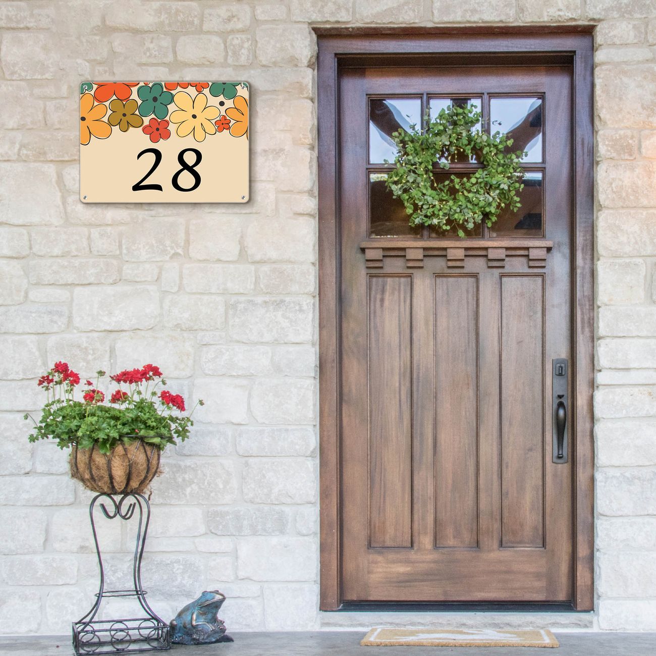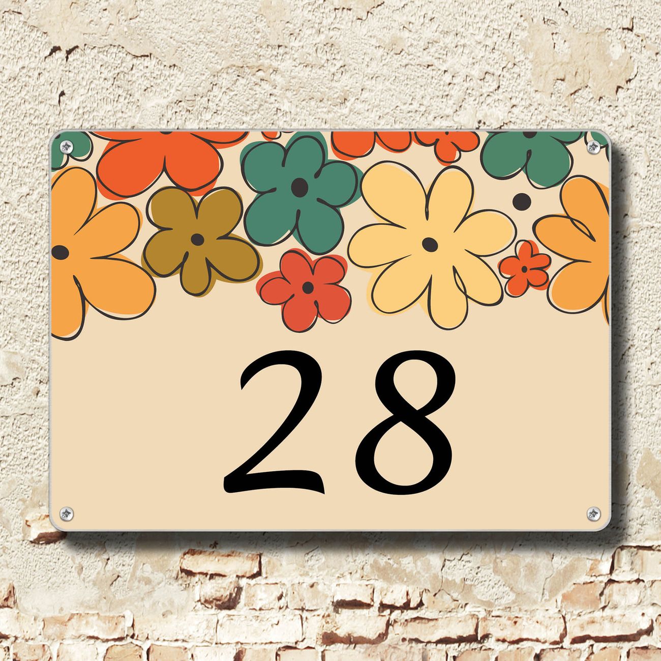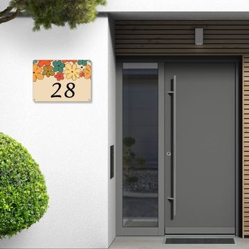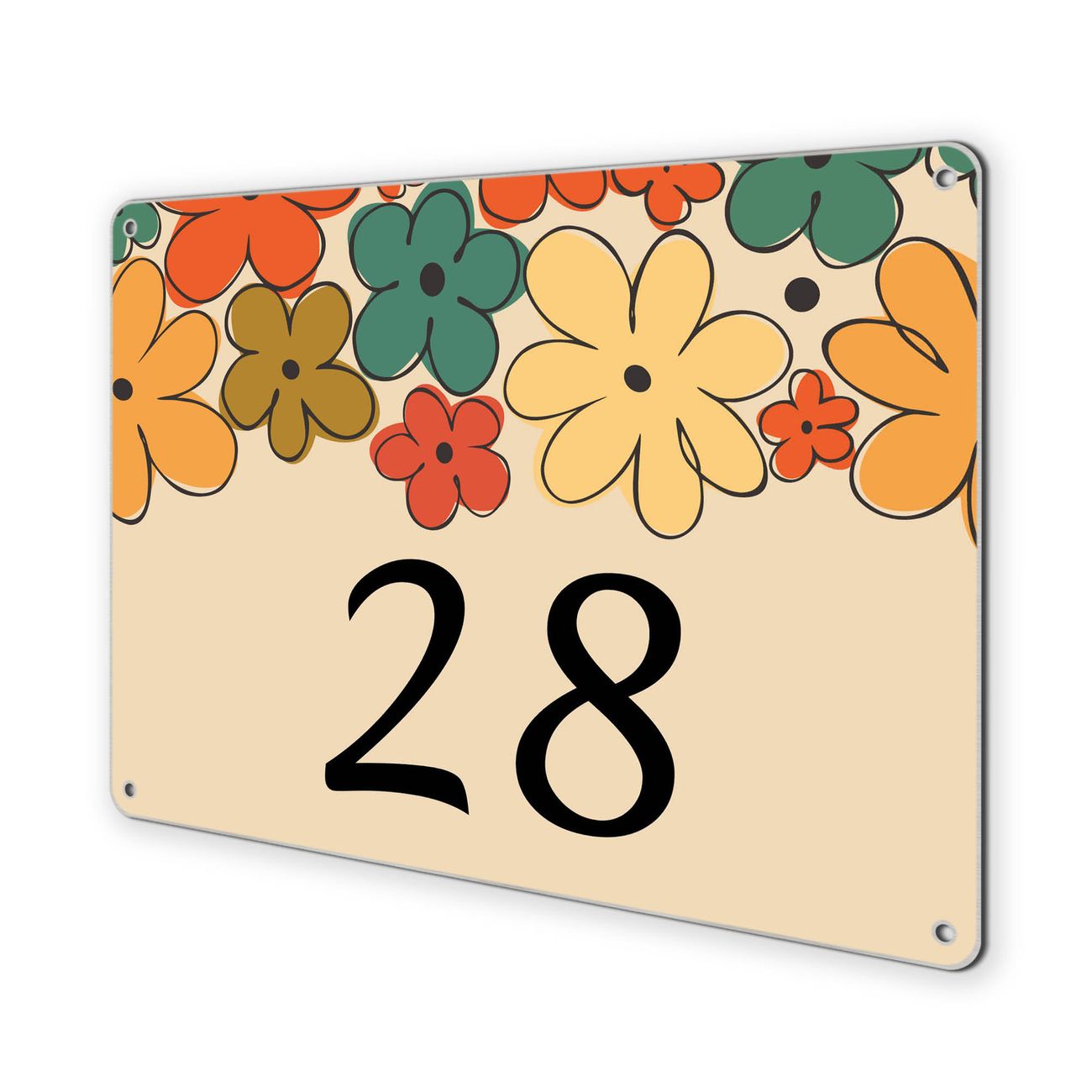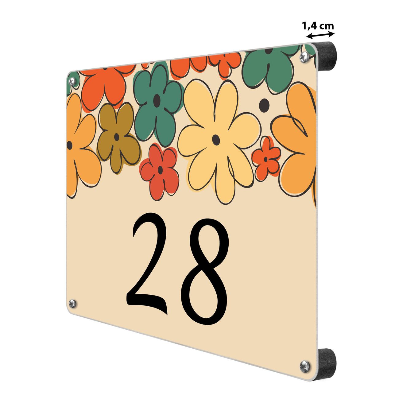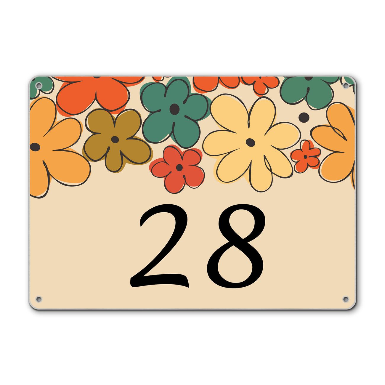 Hausnummernschild Edelstahl personalisierbar WT Gemalte Blumen
