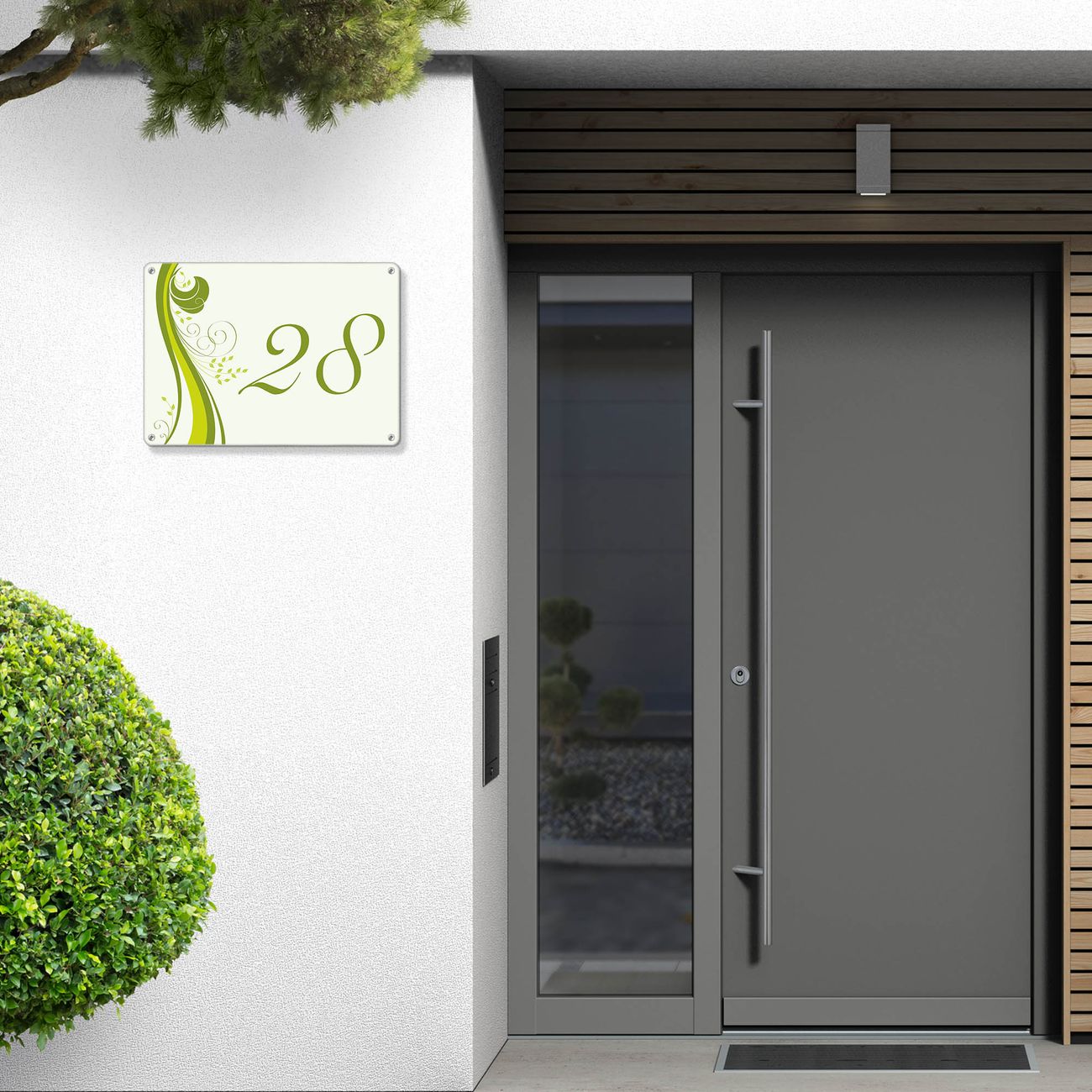Hausnummernschild Edelstahl personalisierbar WT Green Swirl