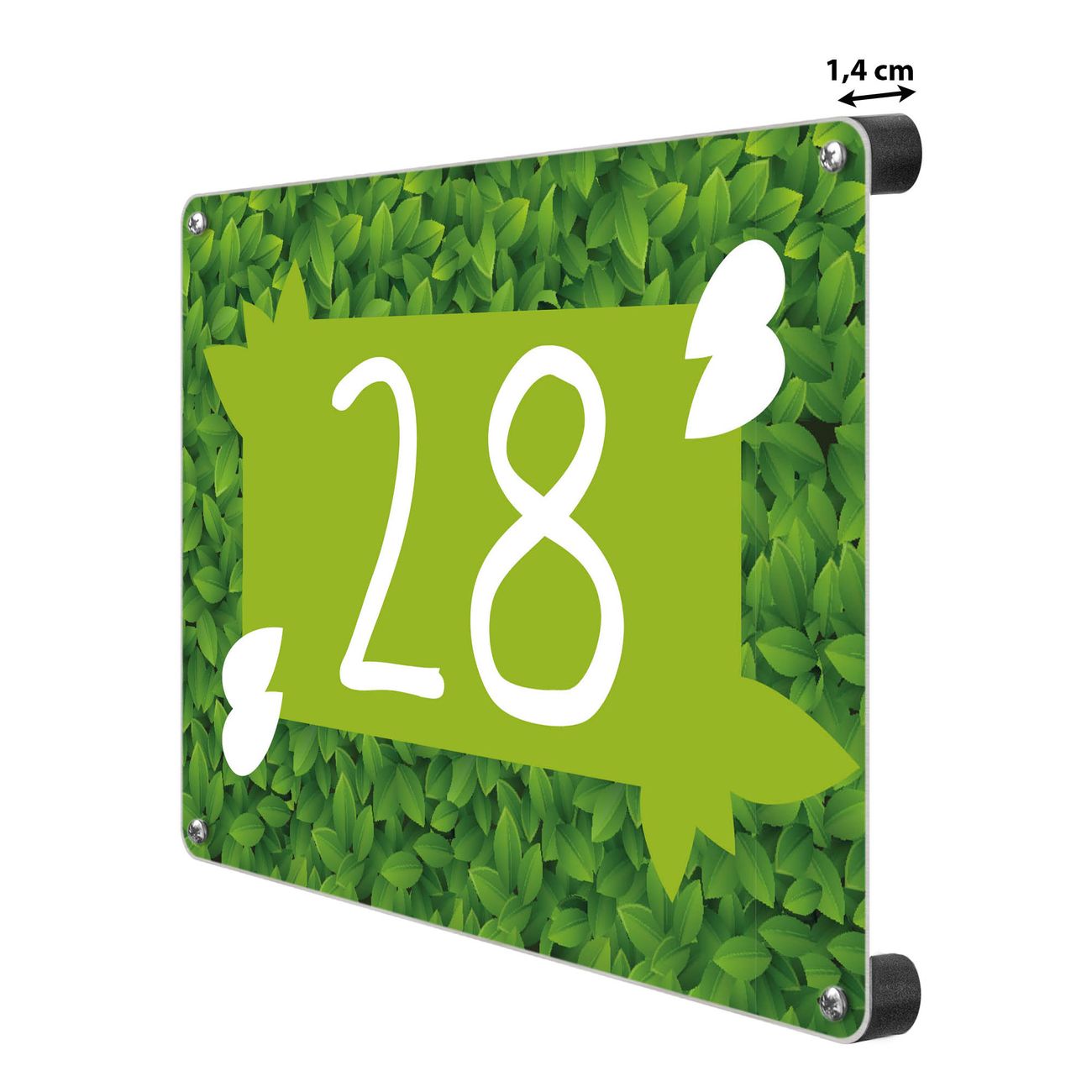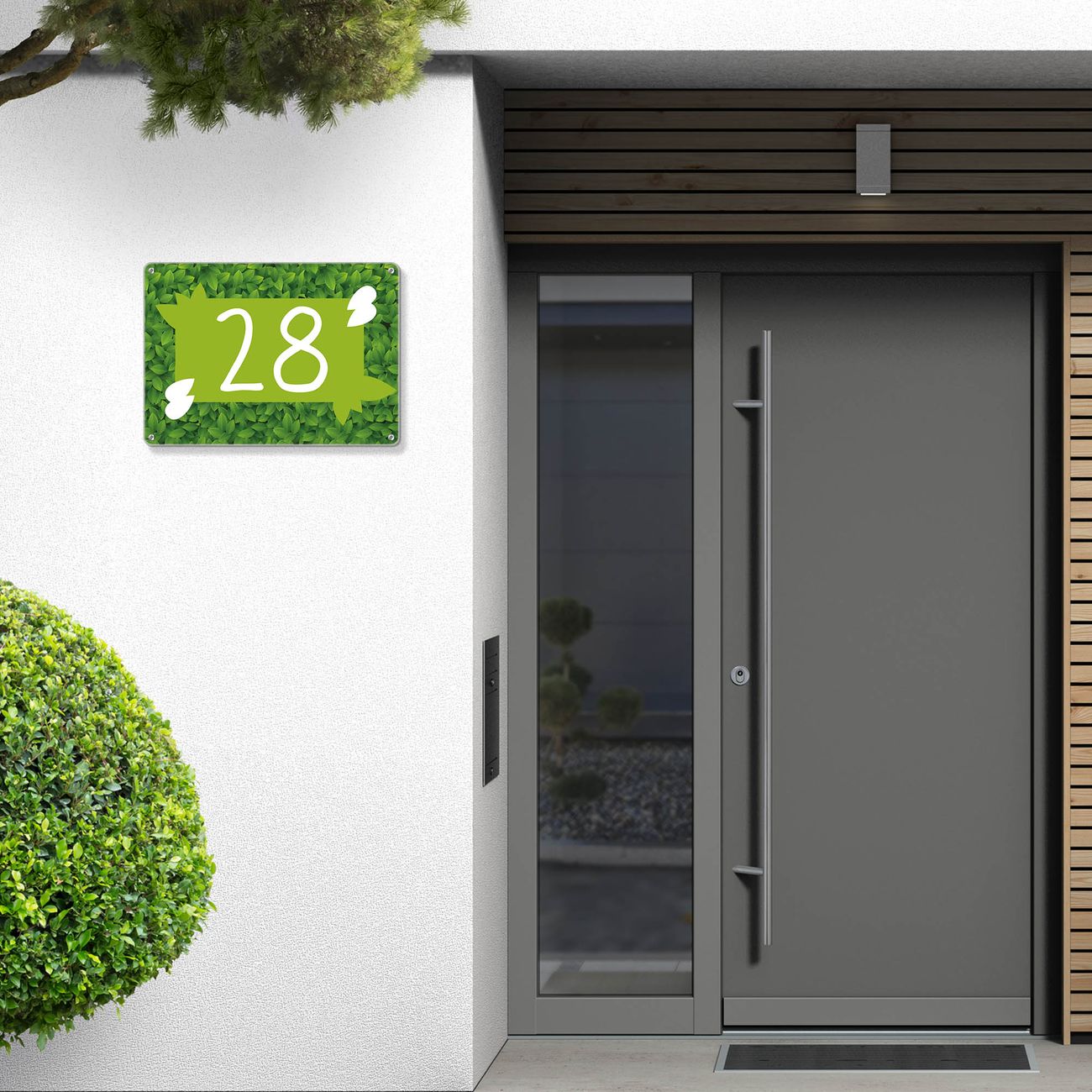 Hausnummernschild Edelstahl personalisierbar WT Grüne Blätter