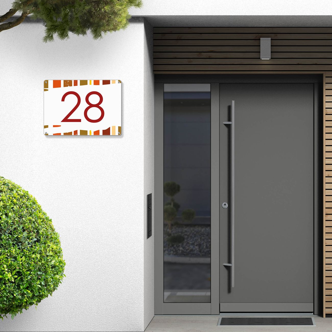 Hausnummernschild Edelstahl personalisierbar WT Herbststreifen