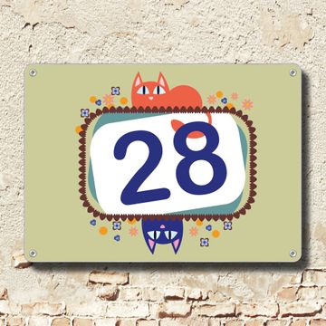 Hausnummernschild Edelstahl personalisierbar WT Karikatur Katzen