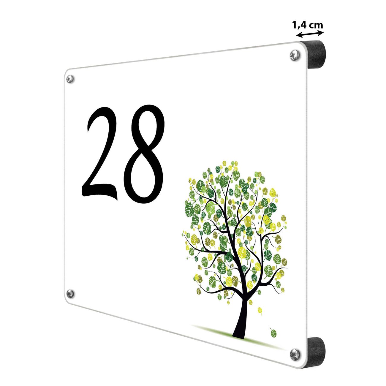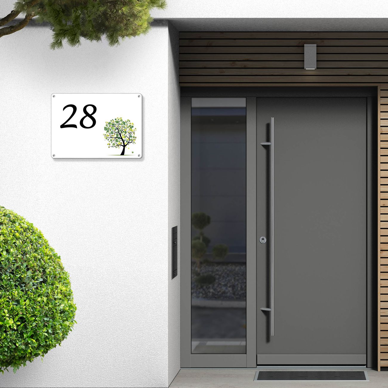 Hausnummernschild Edelstahl personalisierbar WT Laubzauberbaum