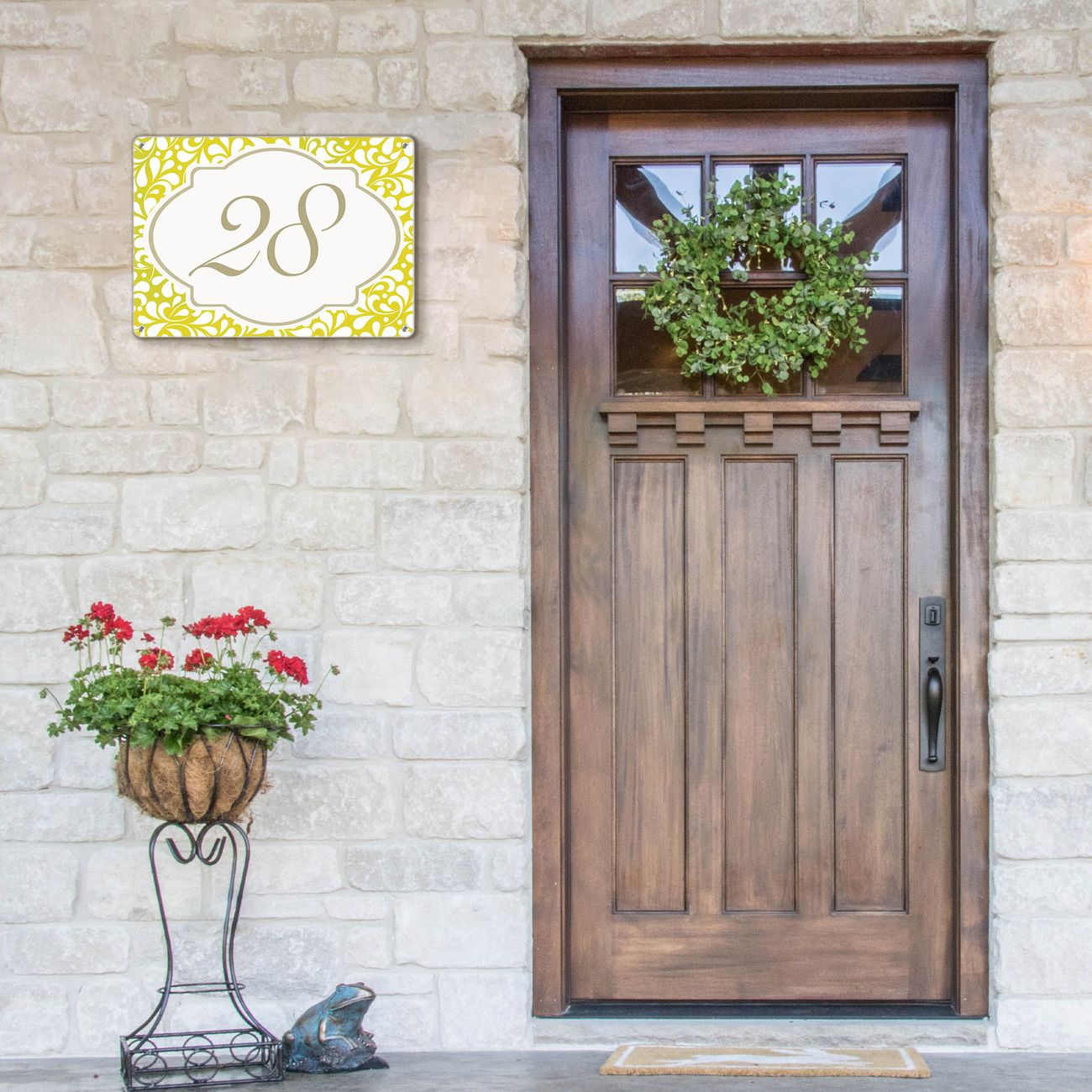 Das banjado Hausnummer Schild ist mit 4 Schrauben einfach am Haus anzubringen und zeigt dank der Größe stilsicher Ihre Hausnummer oder auch individuell Hausnummer mit Straßennamen. Das Hausschild personalisiert können Sie ganz auf Ihre Wünsche anpassen. Wir bieten verschiedenste Motive an. Dazu können Sie das Schild mit Ihrer Hausnummer anpassen.
