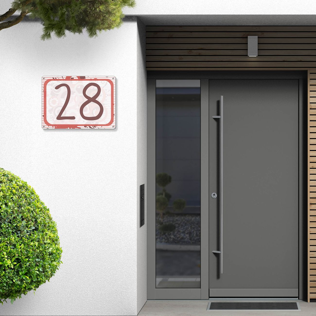 Das banjado Hausnummer Schild ist mit 4 Schrauben einfach am Haus anzubringen und zeigt dank der Größe stilsicher Ihre Hausnummer oder auch individuell Hausnummer mit Straßennamen. Das Hausschild personalisiert können Sie ganz auf Ihre Wünsche anpassen. Wir bieten verschiedenste Motive an. Dazu können Sie das Schild mit Ihrer Hausnummer anpassen.