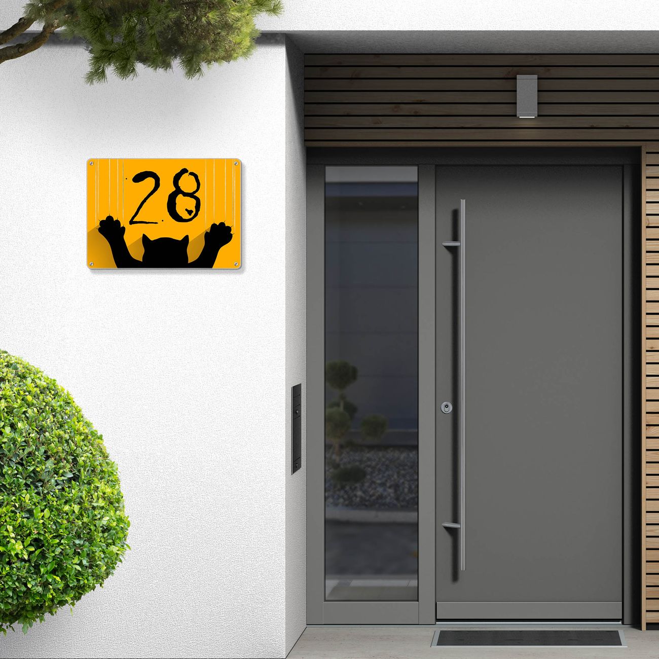 Das banjado Hausnummer Schild ist mit 4 Schrauben einfach am Haus anzubringen und zeigt dank der Größe stilsicher Ihre Hausnummer oder auch individuell Hausnummer mit Straßennamen. Das Hausschild personalisiert können Sie ganz auf Ihre Wünsche anpassen. Wir bieten verschiedenste Motive an. Dazu können Sie das Schild mit Ihrer Hausnummer anpassen.