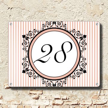 Das banjado Hausnummer Schild ist mit 4 Schrauben einfach am Haus anzubringen und zeigt dank der Größe stilsicher Ihre Hausnummer oder auch individuell Hausnummer mit Straßennamen. Das Hausschild personalisiert können Sie ganz auf Ihre Wünsche anpassen. Wir bieten verschiedenste Motive an. Dazu können Sie das Schild mit Ihrer Hausnummer anpassen.