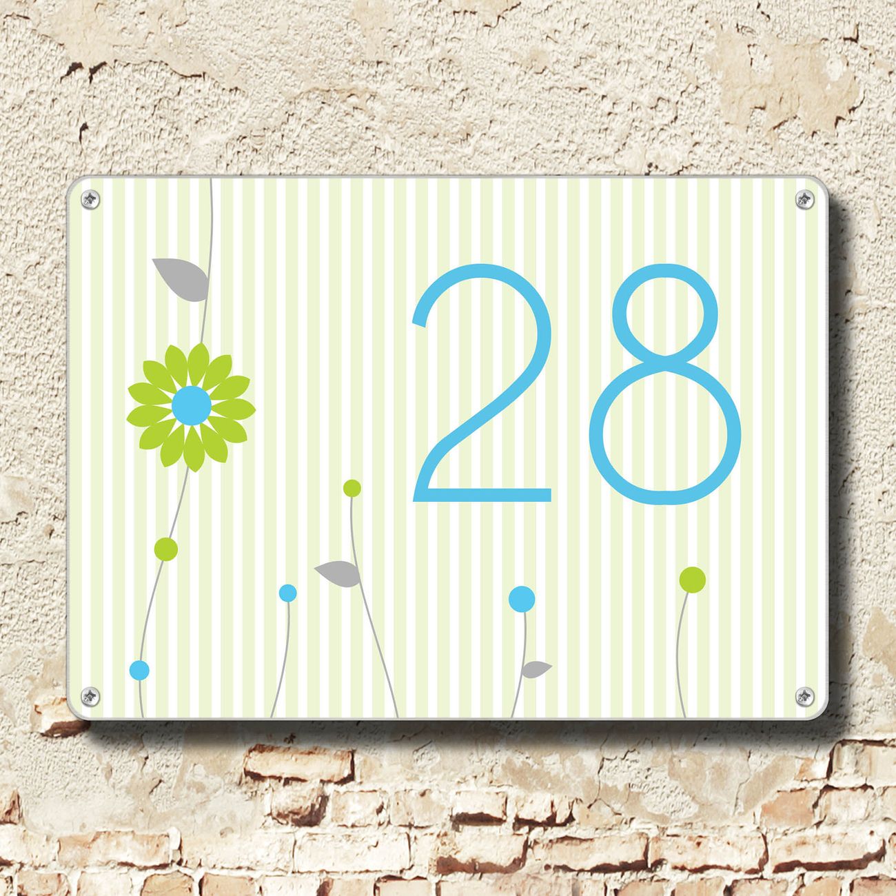 Das banjado Hausnummer Schild ist mit 4 Schrauben einfach am Haus anzubringen und zeigt dank der Größe stilsicher Ihre Hausnummer oder auch individuell Hausnummer mit Straßennamen. Das Hausschild personalisiert können Sie ganz auf Ihre Wünsche anpassen. Wir bieten verschiedenste Motive an. Dazu können Sie das Schild mit Ihrer Hausnummer anpassen.