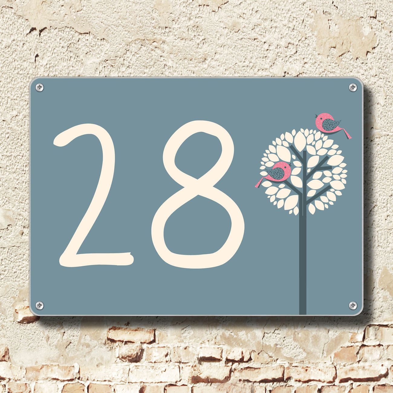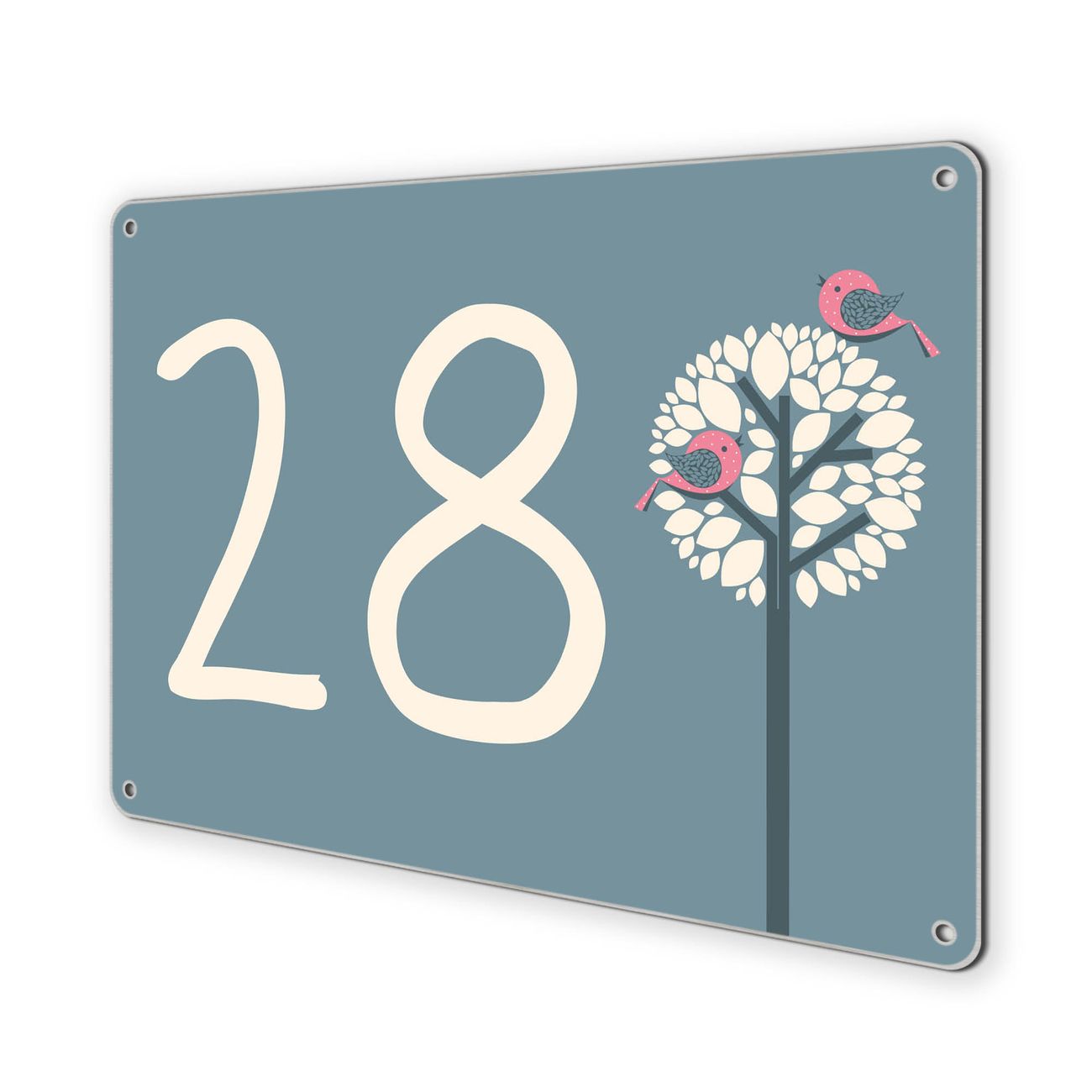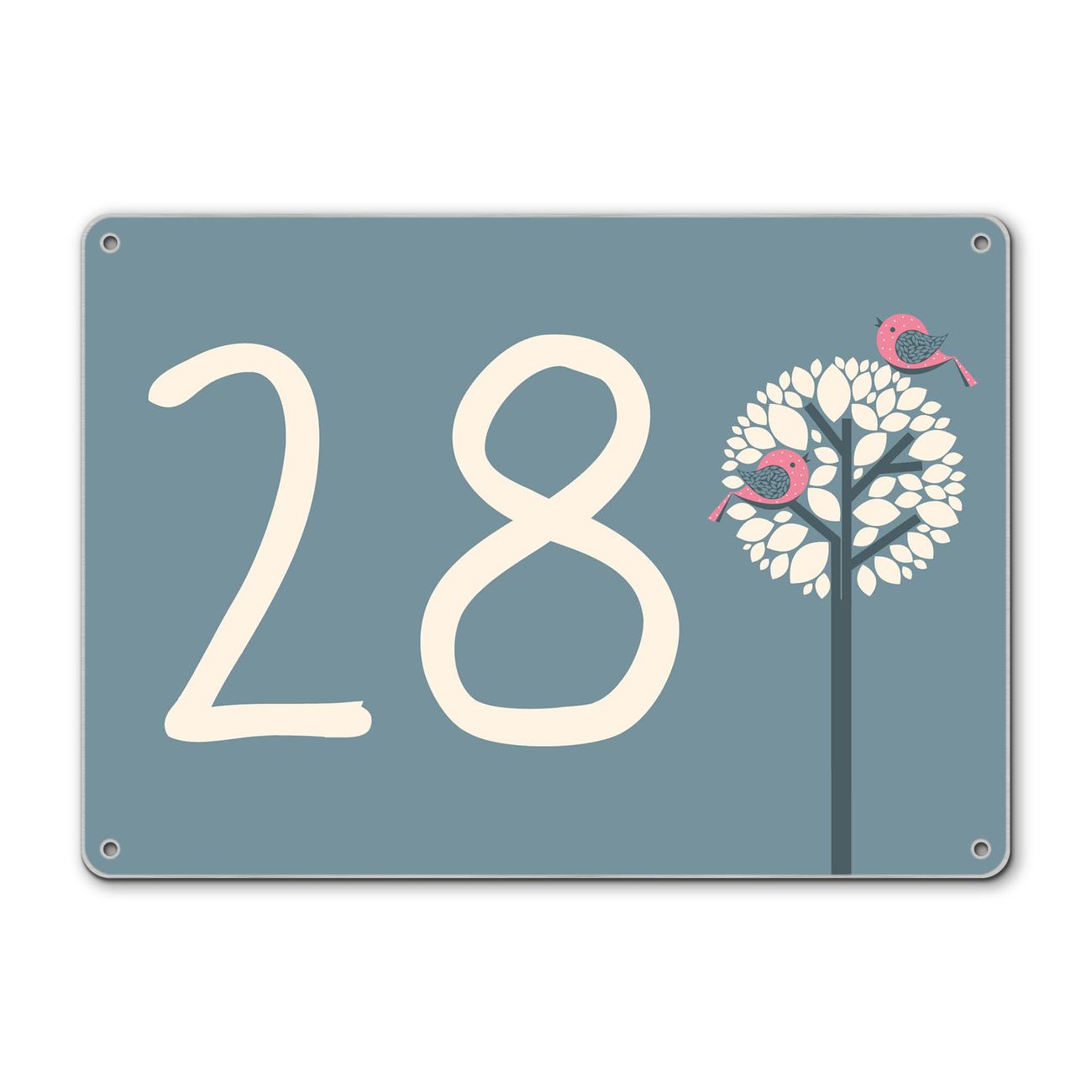 Hausnummernschild Edelstahl personalisierbar Zwei Rosa Vögel