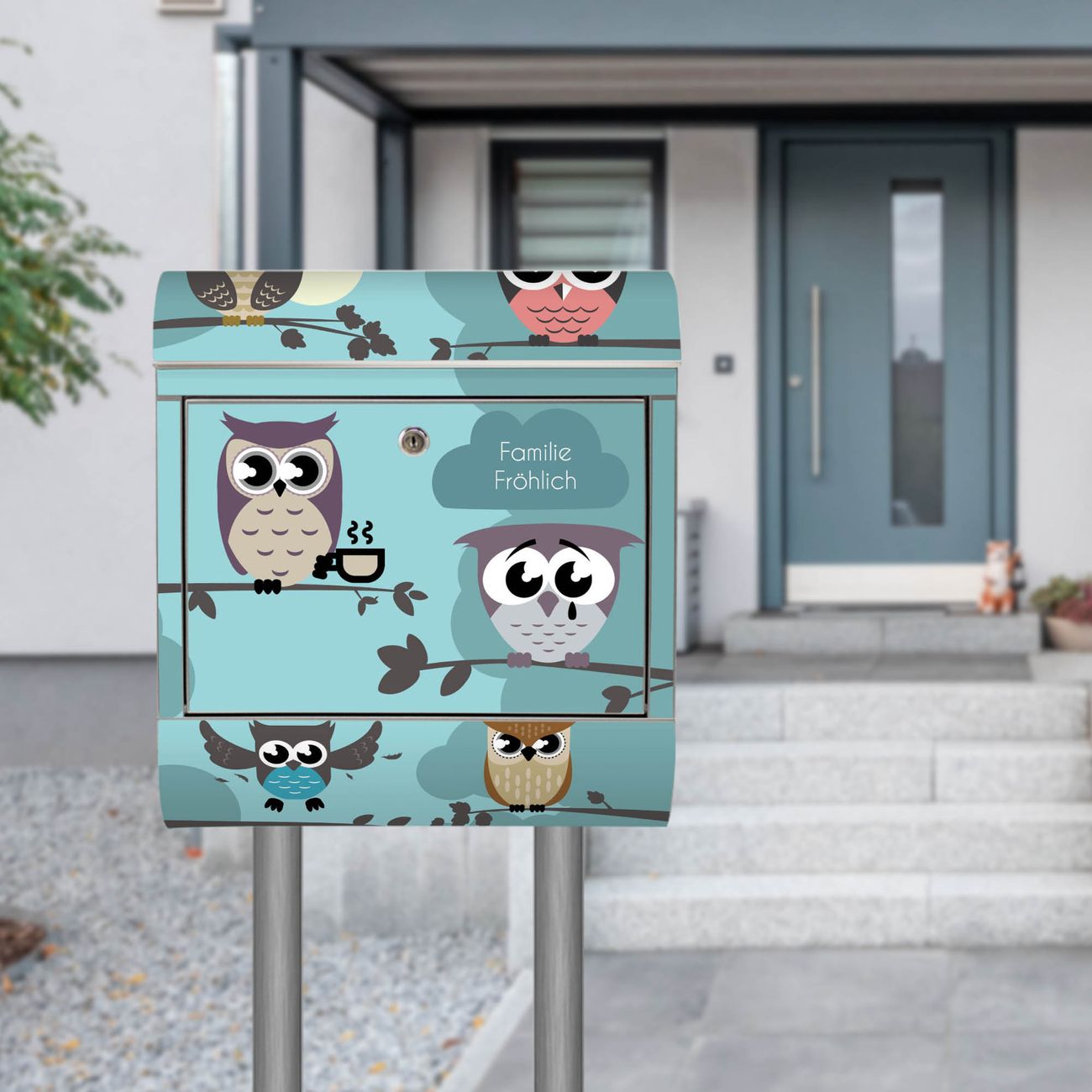 Standbriefkasten Edelstahl Acht Eulen