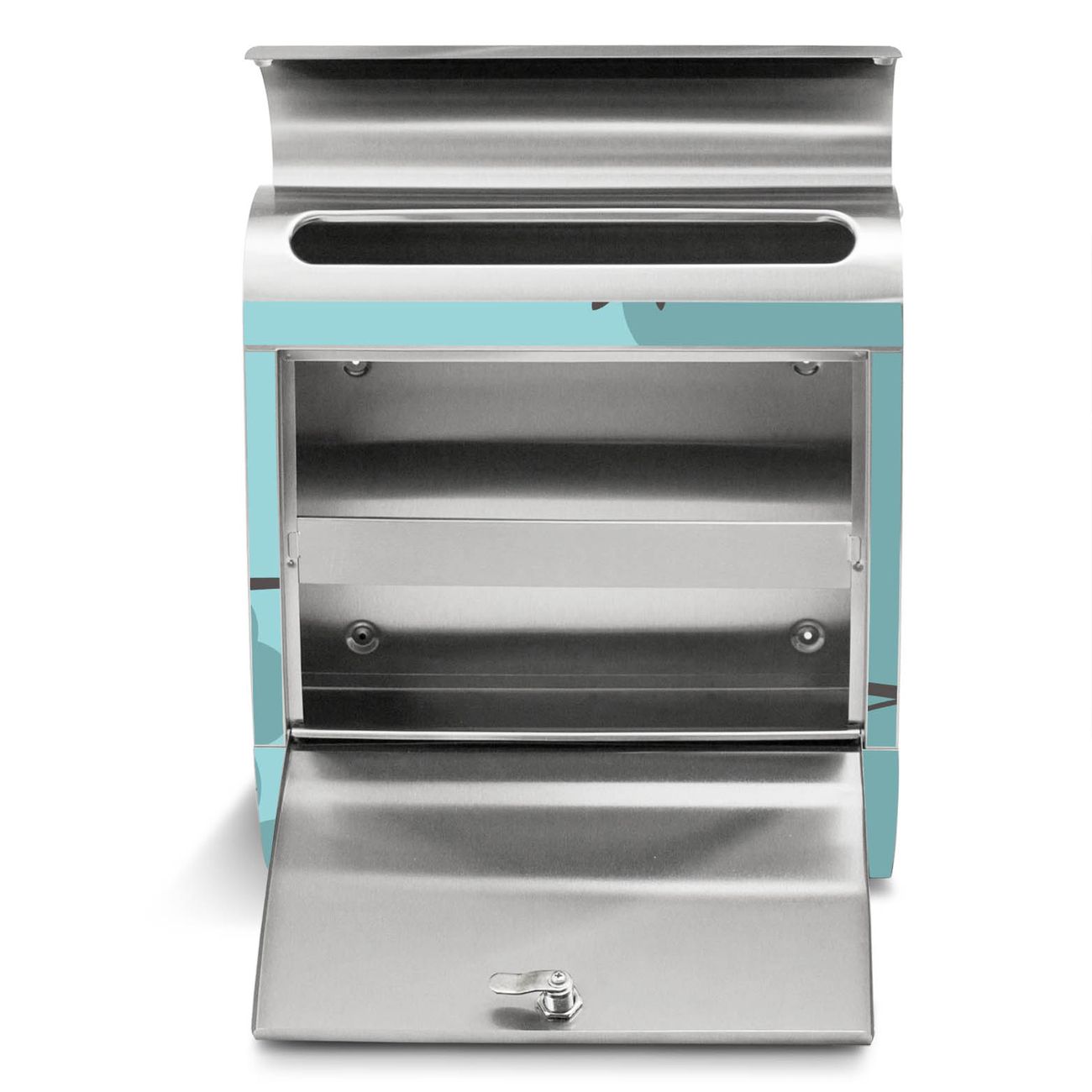 Der banjado Edelstahl Standbriefkasten mit Motiv Acht Eulen und eigenem Wunschtext bietet Ihnen mit seinem Fassungsvermögen genügend Platz auch für große A4 Sendungen. Das integrierte Zeitungsfach eignet sich hervorragend, um unkompliziert die Tageszeitung zu fassen.