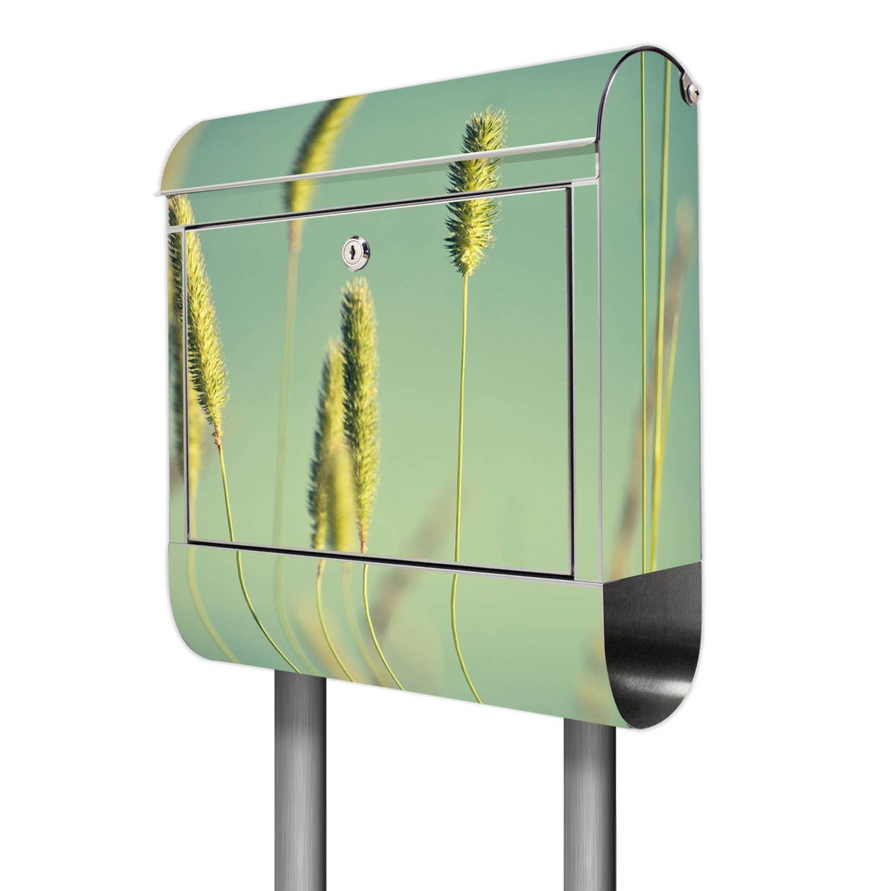 Der Motivstandbriefkasten hat ein sehr ansprechendes und ausgefallenes Design, damit entlocken Sie Ihren Nachbarn und dem Postboten ein Lächeln. Heben Sie Sich ab von der tristen grauen Masse, ohne auf Funktionalität zu verzichten. Der Briefkasten besteht aus hochwertigem 18/0 Edelstahl und die Wetter- und UV-resistenten Folie mit Ähren Motiv ist zusätzlich mit einem Schutzlaminat überzogen. Der Standbriefkasten wird mit Montagematerial und zwei Schlüsseln geliefert.