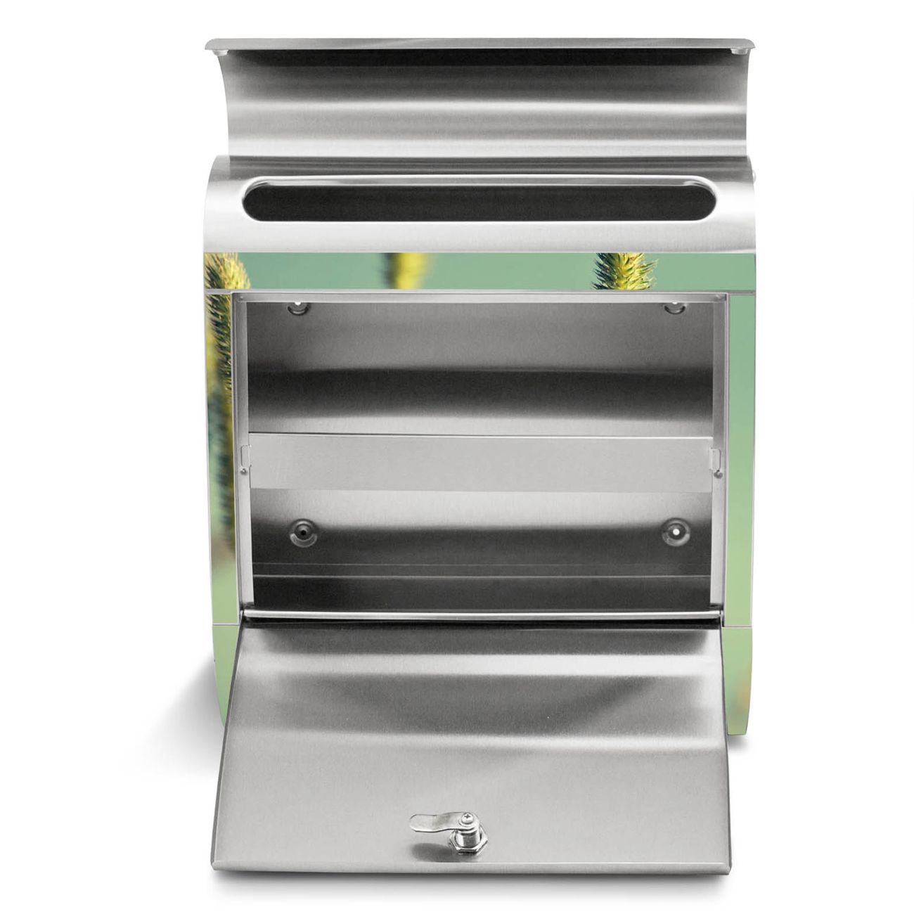 Der banjado Edelstahl Standbriefkasten mit Motiv Ähren bietet Ihnen mit seinem Fassungsvermögen genügend Platz auch für große A4 Sendungen. Das integrierte Zeitungsfach eignet sich hervorragend, um unkompliziert die Tageszeitung zu fassen.