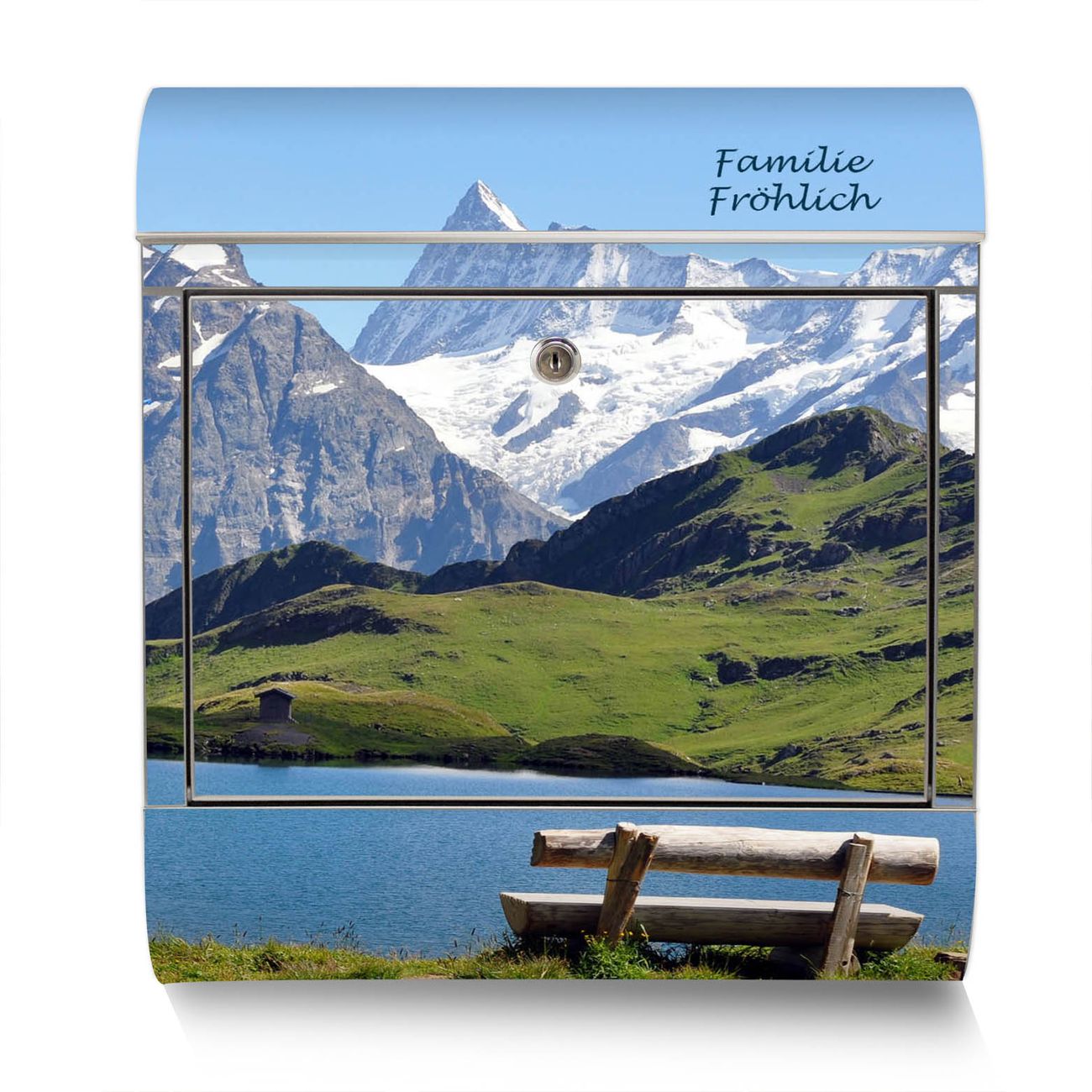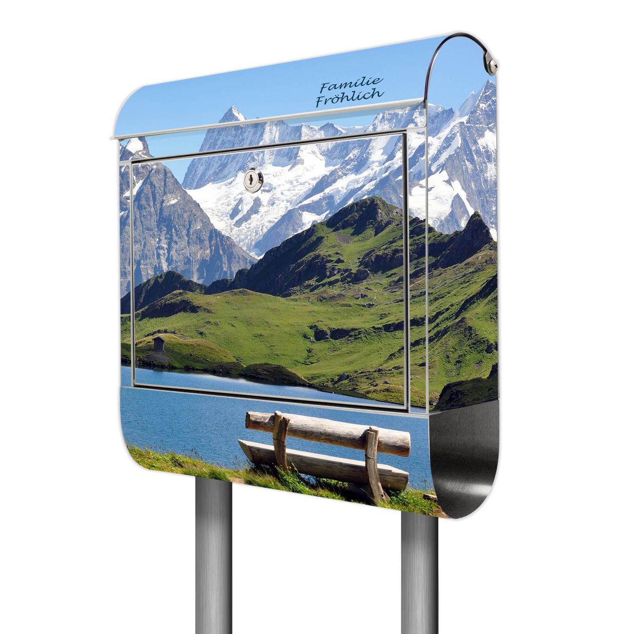 Der Motivstandbriefkasten hat ein sehr ansprechendes und ausgefallenes Design, damit entlocken Sie Ihren Nachbarn und dem Postboten ein Lächeln. Heben Sie Sich ab von der tristen grauen Masse, ohne auf Funktionalität zu verzichten. Der Briefkasten besteht aus hochwertigem 18/0 Edelstahl und die Wetter- und UV-resistenten Folie mit Alpen Motiv ist zusätzlich mit einem Schutzlaminat überzogen. Der Standbriefkasten wird mit Montagematerial und zwei Schlüsseln geliefert.