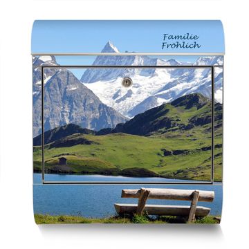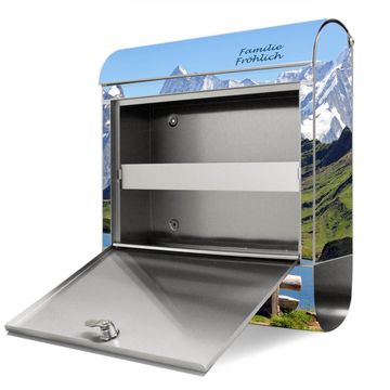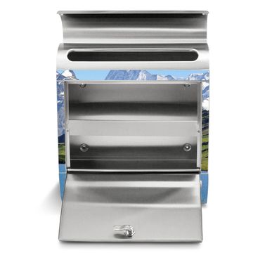 Der banjado Edelstahl Standbriefkasten mit Motiv Alpen und eigenem Wunschtext bietet Ihnen mit seinem Fassungsvermögen genügend Platz auch für große A4 Sendungen. Das integrierte Zeitungsfach eignet sich hervorragend, um unkompliziert die Tageszeitung zu fassen.