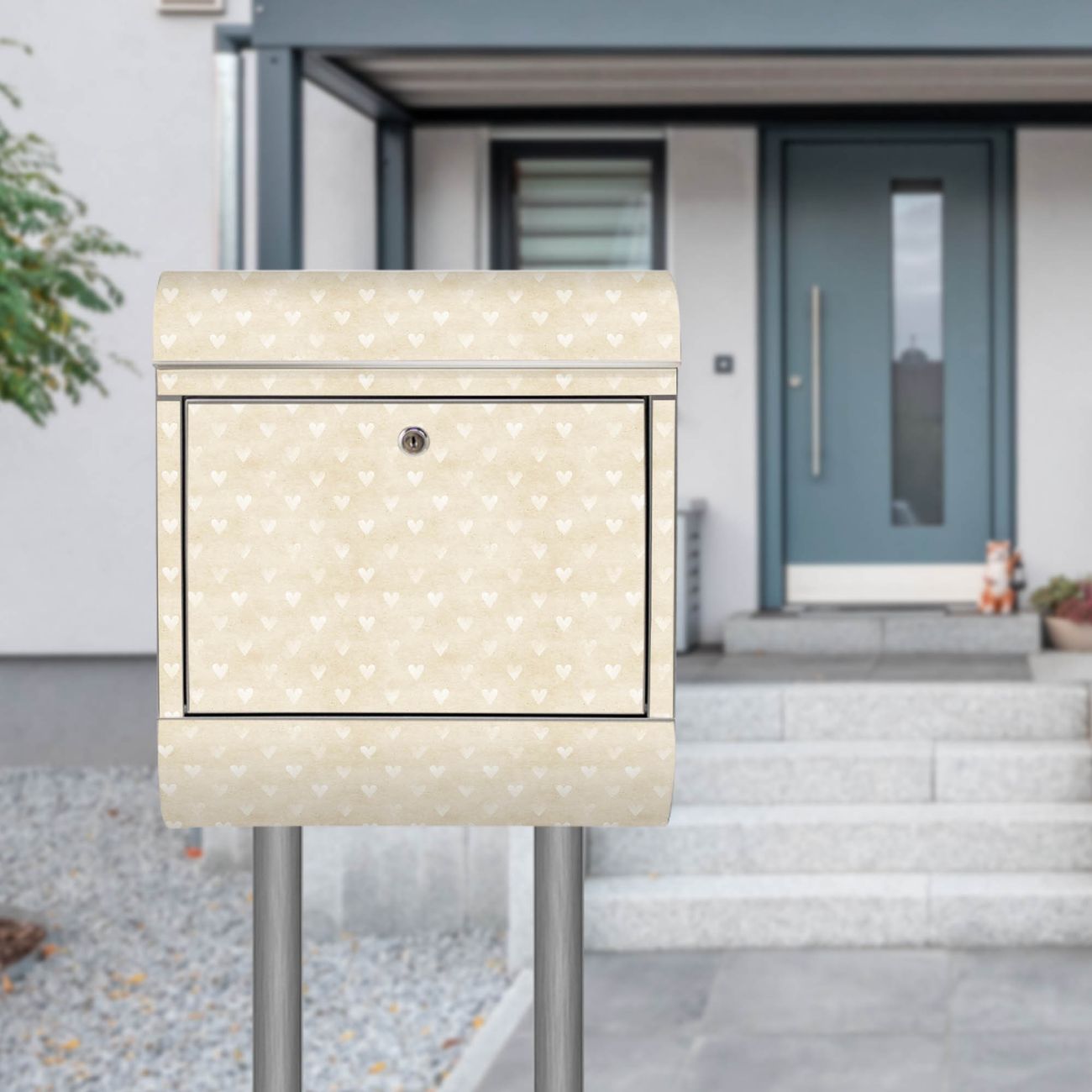 Standbriefkasten Edelstahl Beige Herzen