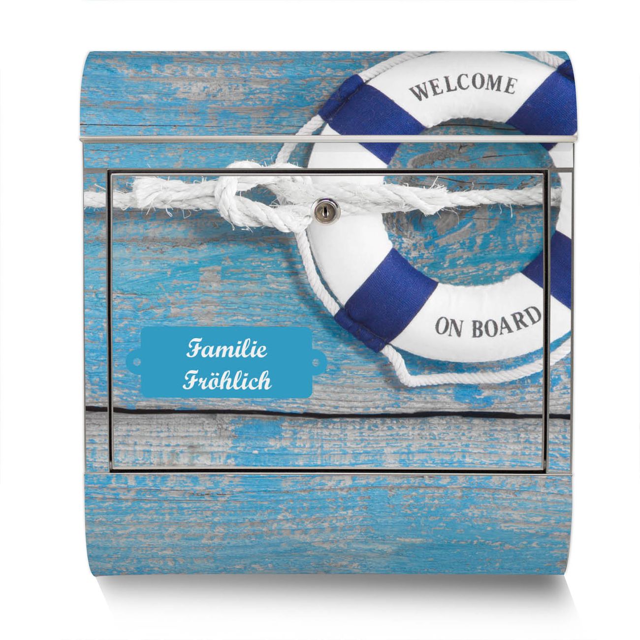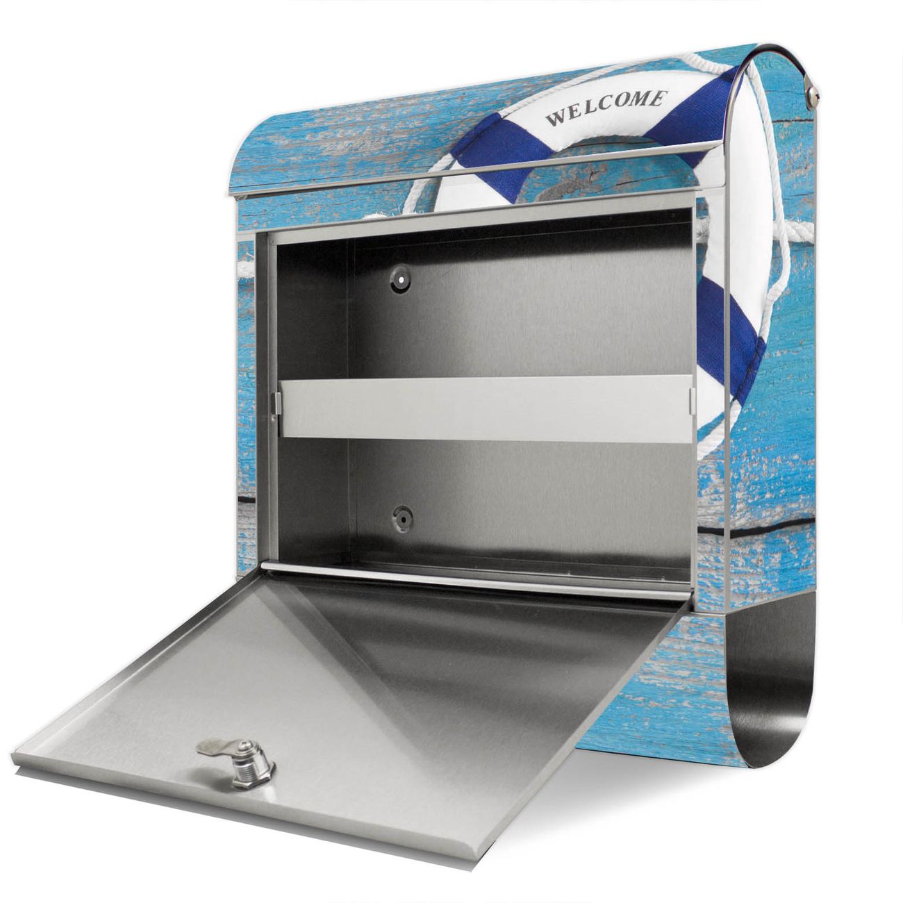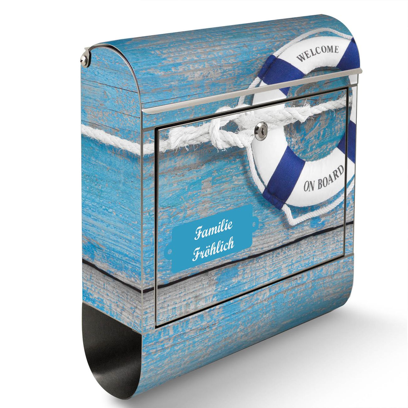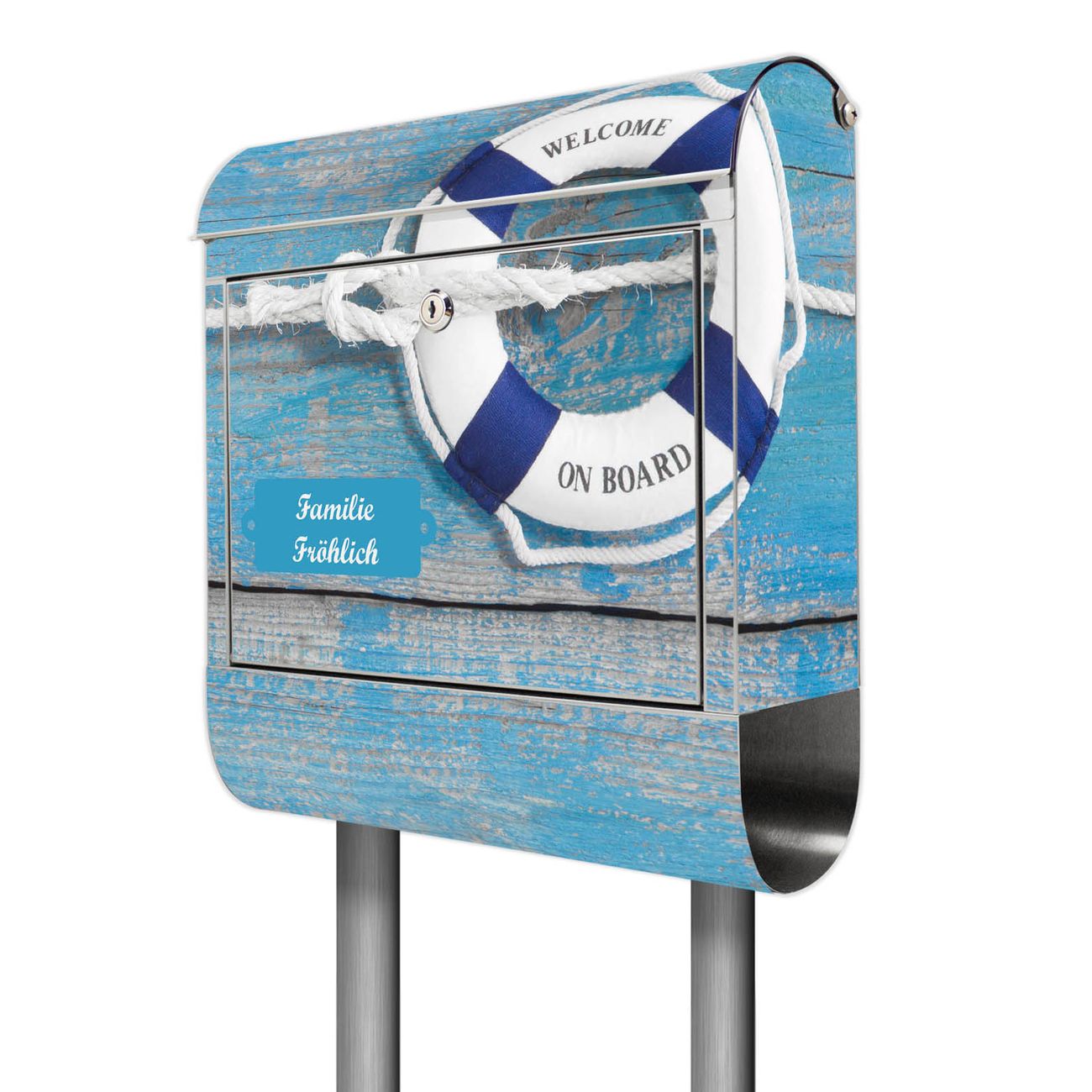 Standbriefkasten Edelstahl Blauer Rettungsring
