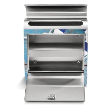 Der Motivstandbriefkasten hat ein sehr ansprechendes und ausgefallenes Design, damit entlocken Sie Ihren Nachbarn und dem Postboten ein Lächeln. Heben Sie Sich ab von der tristen grauen Masse, ohne auf Funktionalität zu verzichten. Der Briefkasten besteht aus hochwertigem 18/0 Edelstahl und die Wetter- und UV-resistenten Folie mit Blauer Rettungsring Motiv ist zusätzlich mit einem Schutzlaminat überzogen. Der Standbriefkasten wird mit Montagematerial und zwei Schlüsseln geliefert.