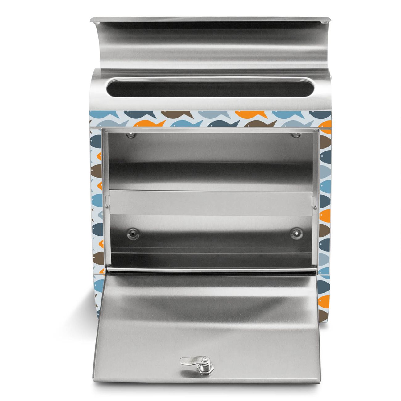 Der banjado Edelstahl Standbriefkasten mit Motiv Bunte Fische bietet Ihnen mit seinem Fassungsvermögen genügend Platz auch für große A4 Sendungen. Das integrierte Zeitungsfach eignet sich hervorragend, um unkompliziert die Tageszeitung zu fassen.