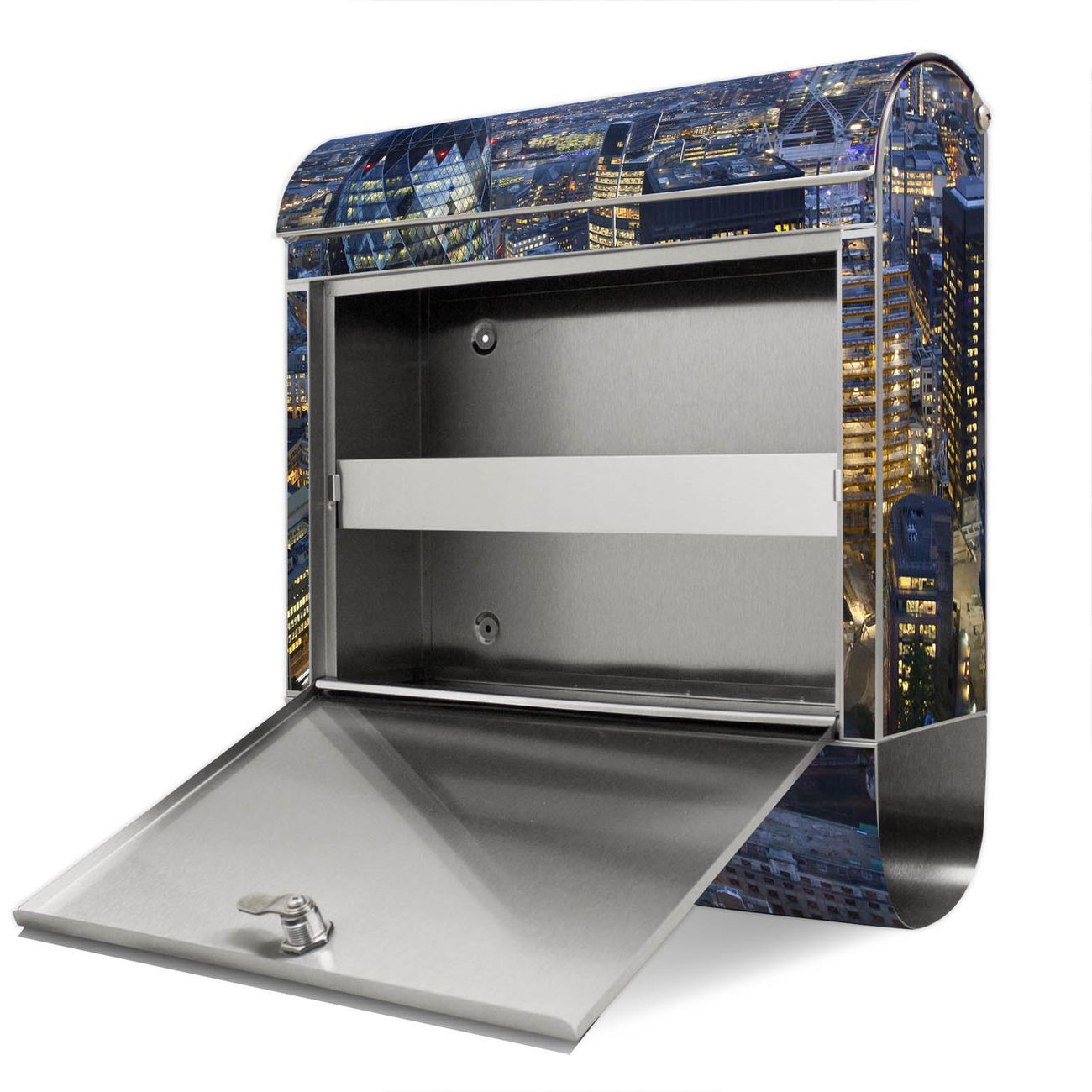 Der Motivstandbriefkasten hat ein sehr ansprechendes und ausgefallenes Design, damit entlocken Sie Ihren Nachbarn und dem Postboten ein Lächeln. Heben Sie Sich ab von der tristen grauen Masse, ohne auf Funktionalität zu verzichten. Der Briefkasten besteht aus hochwertigem 18/0 Edelstahl und die Wetter- und UV-resistenten Folie mit City Of London Motiv ist zusätzlich mit einem Schutzlaminat überzogen. Der Standbriefkasten wird mit Montagematerial und zwei Schlüsseln geliefert.