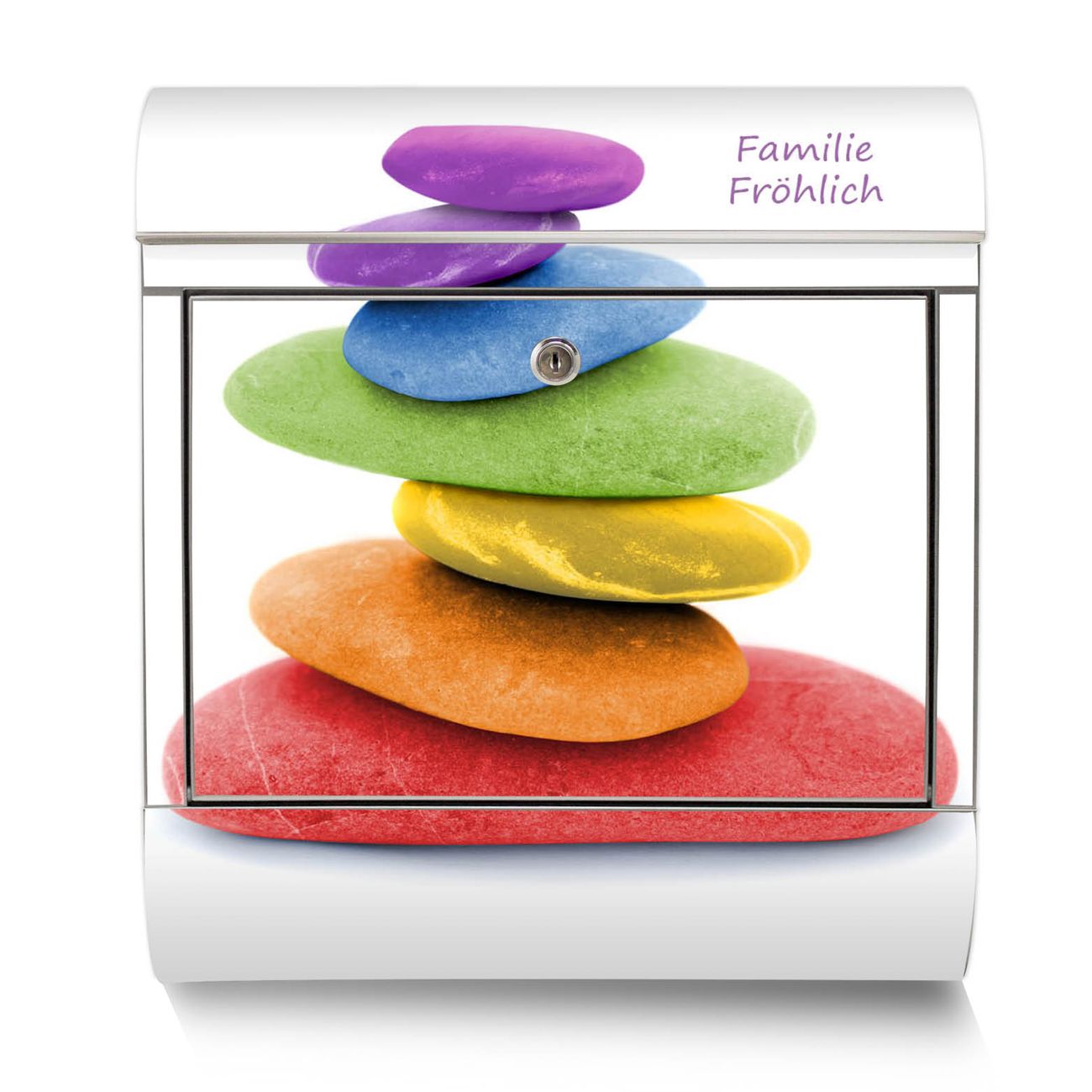Der Motivstandbriefkasten hat ein sehr ansprechendes und ausgefallenes Design, damit entlocken Sie Ihren Nachbarn und dem Postboten ein Lächeln. Heben Sie Sich ab von der tristen grauen Masse, ohne auf Funktionalität zu verzichten. Der Briefkasten besteht aus hochwertigem 18/0 Edelstahl und die Wetter- und UV-resistenten Folie mit Coloured Stone Motiv ist zusätzlich mit einem Schutzlaminat überzogen. Der Standbriefkasten wird mit Montagematerial und zwei Schlüsseln geliefert.