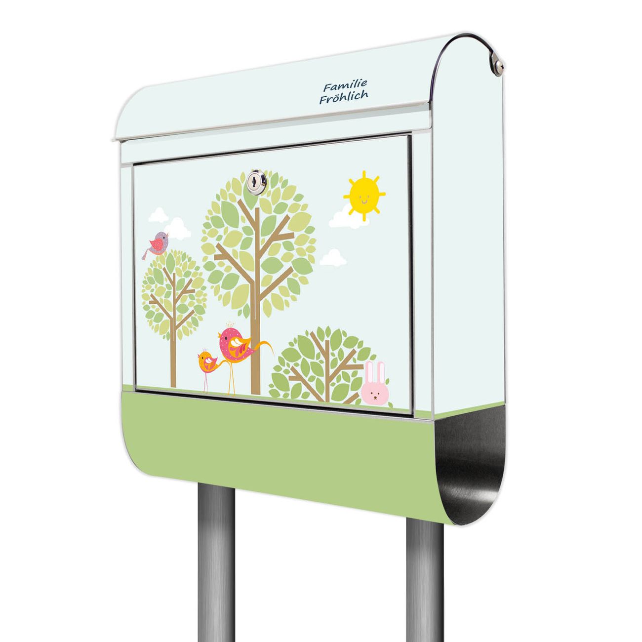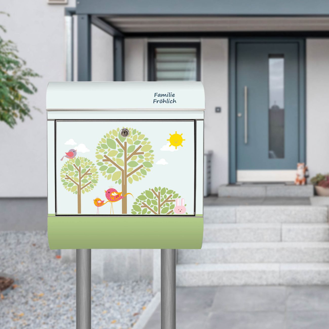 Der Motivstandbriefkasten hat ein sehr ansprechendes und ausgefallenes Design, damit entlocken Sie Ihren Nachbarn und dem Postboten ein Lächeln. Heben Sie Sich ab von der tristen grauen Masse, ohne auf Funktionalität zu verzichten. Der Briefkasten besteht aus hochwertigem 18/0 Edelstahl und die Wetter- und UV-resistenten Folie mit Drei Bäume Motiv ist zusätzlich mit einem Schutzlaminat überzogen. Der Standbriefkasten wird mit Montagematerial und zwei Schlüsseln geliefert.