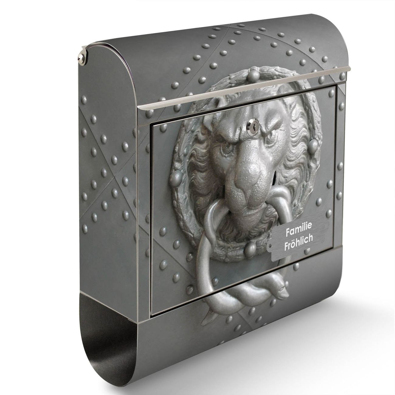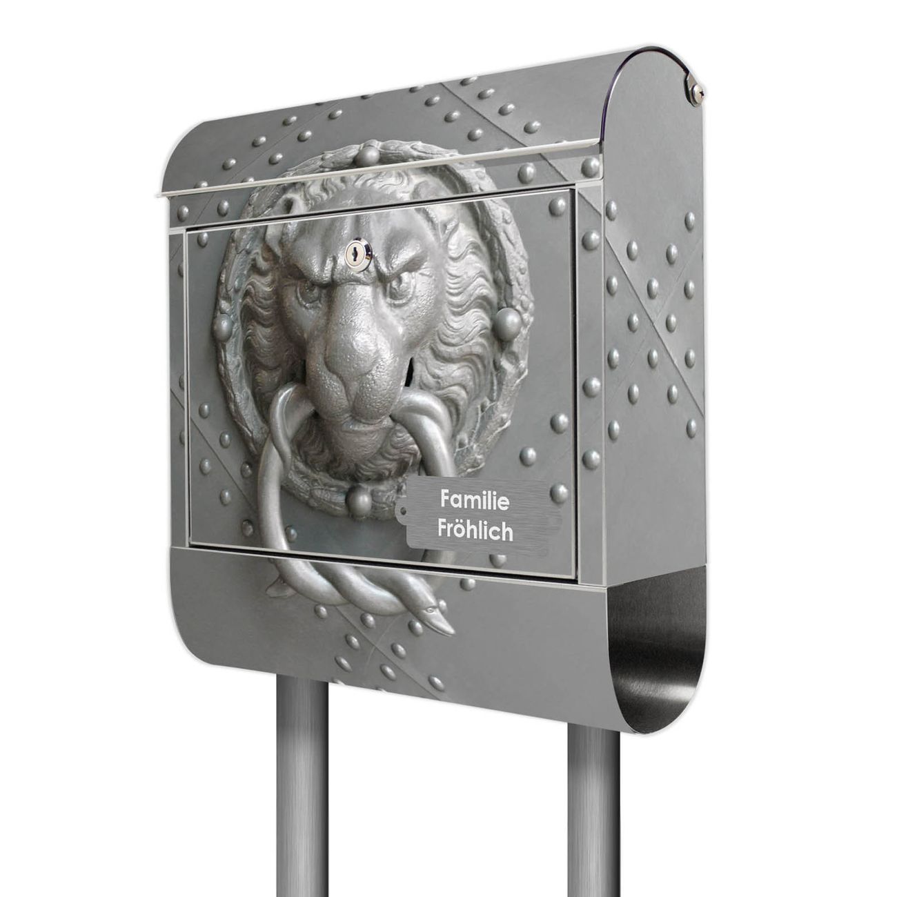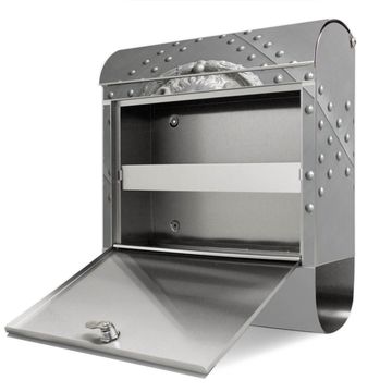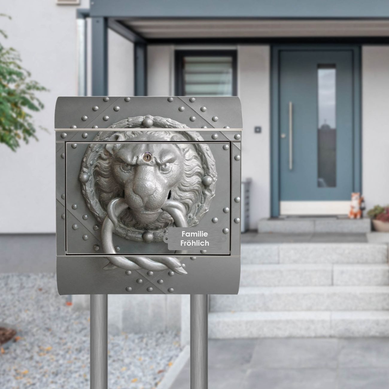 Der banjado Edelstahl Standbriefkasten mit Motiv Eisentor und eigenem Wunschtext bietet Ihnen mit seinem Fassungsvermögen genügend Platz auch für große A4 Sendungen. Das integrierte Zeitungsfach eignet sich hervorragend, um unkompliziert die Tageszeitung zu fassen.